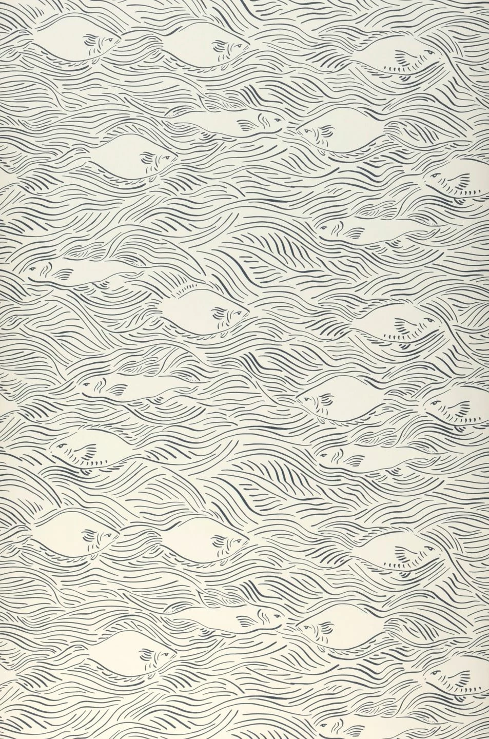 War da ein Fisch? Schon ist er im Bach weiter geflitzt. Das Design der Tapete aus dem Hause Ferm Living setzt den Eindruck beim Betrachten eines fischreichen Flüsschens künstlerisch um. Zwischen den wie handgezeichnet wirkenden Wellenlinien, die die bewegte Wasseroberfläche nur andeuten, entstehen verschiedene Fische nur aus wenigen Umrissen und Aussparungen. Die monochrome Farbgebung aus anthrazitfarbenen Linien auf cremeweißem Grund unterstreicht die raffinierte Wirkung.