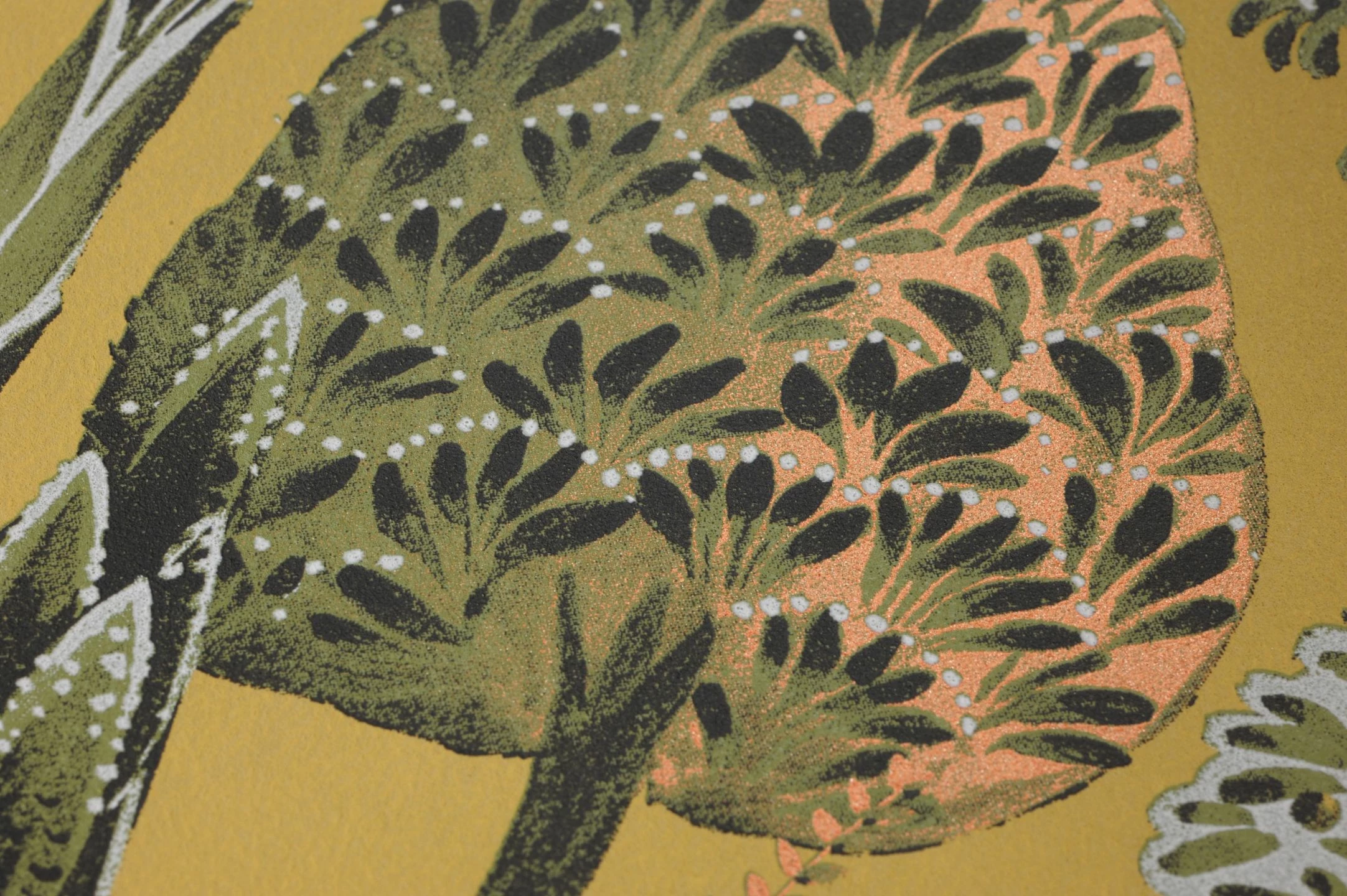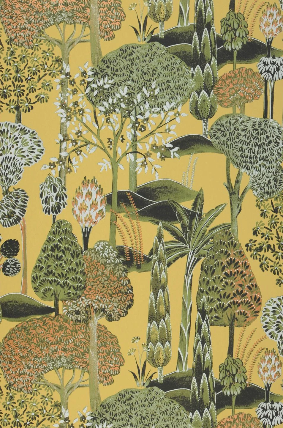 Ein Wald aus den unterschiedlichsten Laubbäumen ist das Thema der Vliestapete Akari. Erste Brauntöne mischen sich unter das Grün der Blätter und scheinen die beginnende Laubfärbung des Herbstes anzukündigen. Doch gleichzeitig erinnert der blassgelbe Grund an die warmen Sonnenstrahlen eines goldenen Oktobertags. Abwechslungsreich und voller Liebe zum Detail sind die verschiedenen Bäume dargestellt.