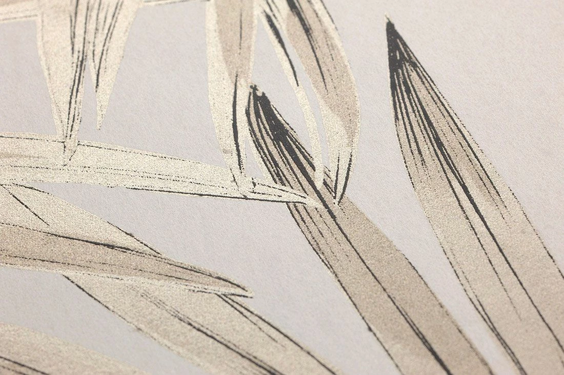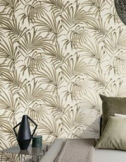 Weitsicht und Nahsicht eröffnen auf der floralen Muster Tapete ganz unterschiedliche Perspektiven. Die künstlerisch gestalteten Palmenzweige schimmern sanft, wenn das Licht sie berührt. Edle natürliche Raumkonzepte, die mit Exotik gewürzt sein sollen, haben an dieser Design Tapete ihre helle Freude.