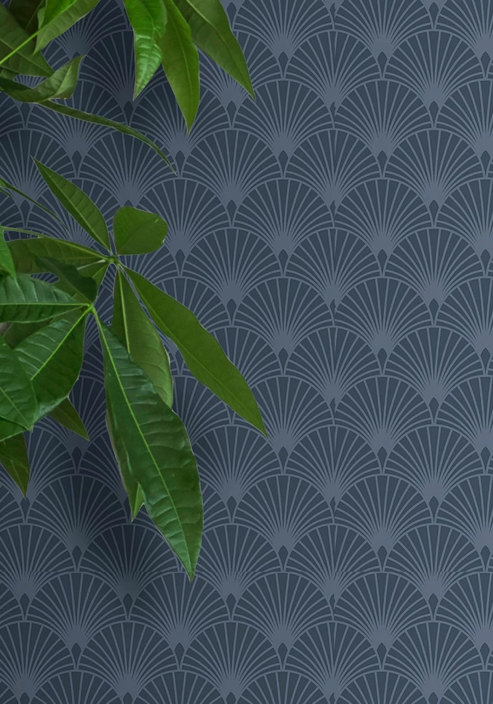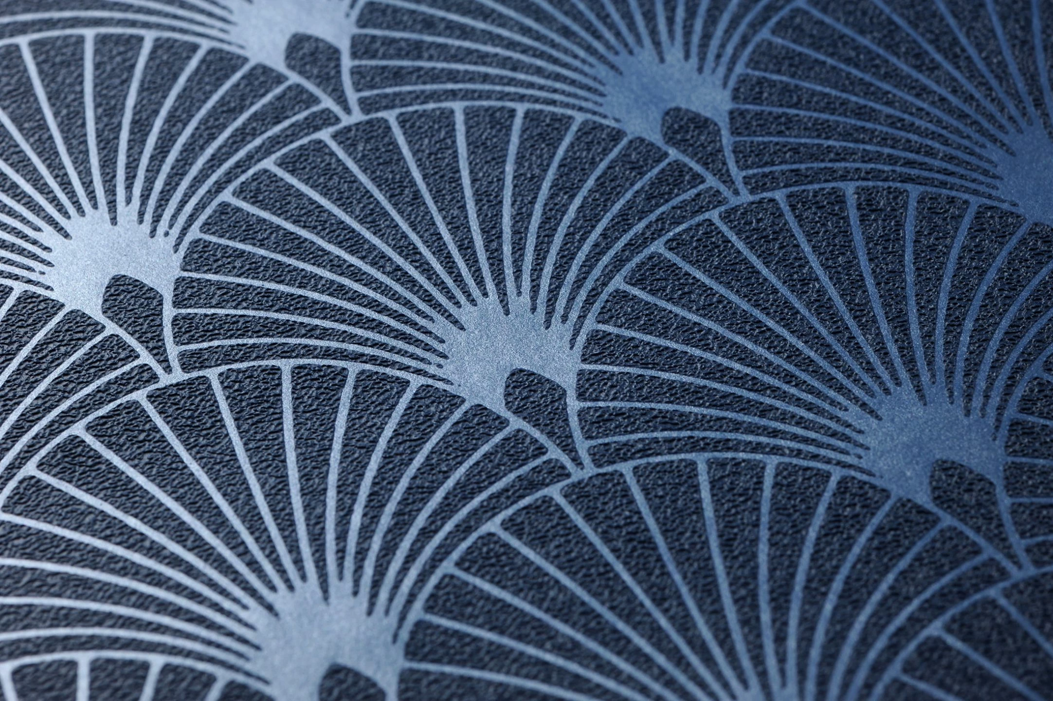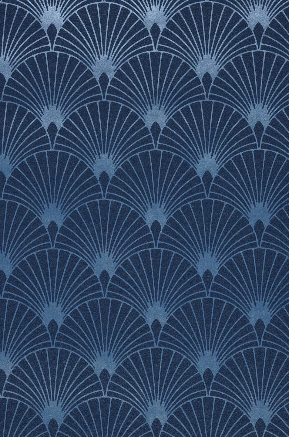 Aus dem Gegensatz von matten, erhabenen Flächen in Dunkelblau und flachen Linien in schimmerndem Pastellblau ist das Fächermuster auf der Art-Deco-Tapete aufgebaut. Ihre fühlbare Reliefstruktur gibt der Tapete zusätzliche Lebendigkeit. Das Oberflächenmaterial Vinyl, das auf die Vliestapete aufgebracht wurde, macht sie hoch waschbeständig und ermöglicht Ihnen, selbst Ihr Badezimmer mit „Babylone“ zu verschönern.