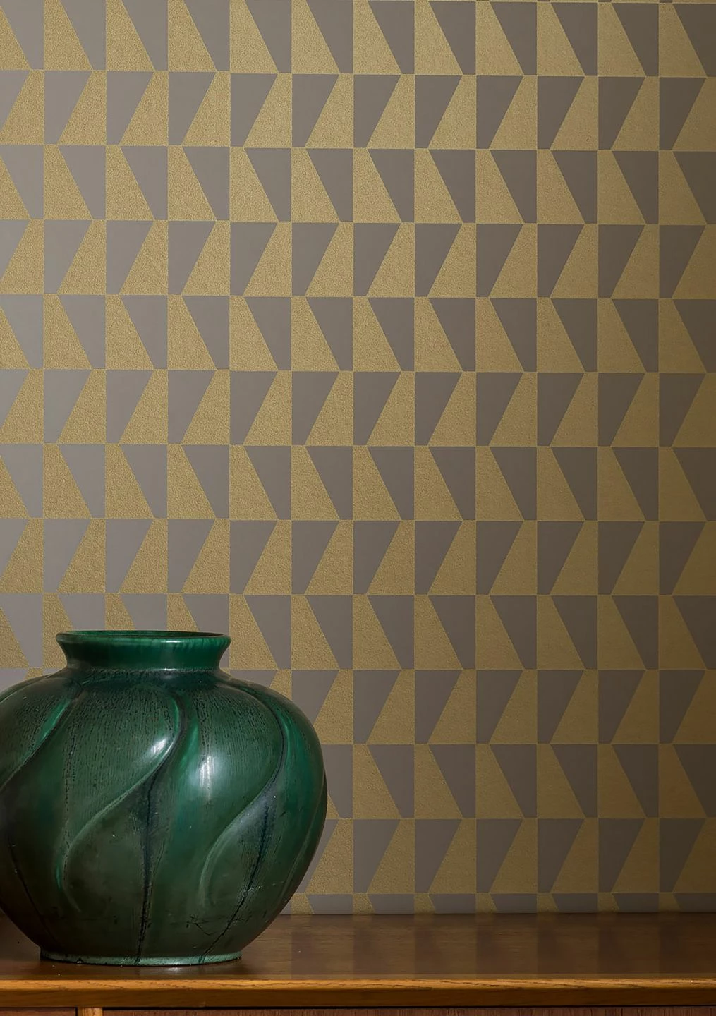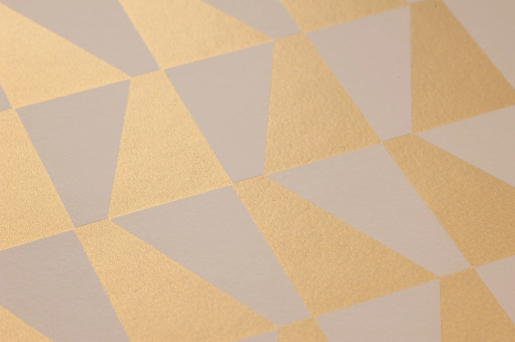 Schimmernd perlgoldfarben und hellgrau sind die Trapeze, die die geometrische Tapete „Balder“ schmücken. Die unterschiedliche Ausrichtung der Formen lässt eine Art von sanft bewegter Wellenstruktur entstehen und belebt Ihren Raum, ohne ihn zu unruhig werden zu lassen. Das Perlgold auf dem neutralen Hellgrau fügt warmen Glamour hinzu und schafft eine edle und gleichzeitig dezente Atmosphäre.