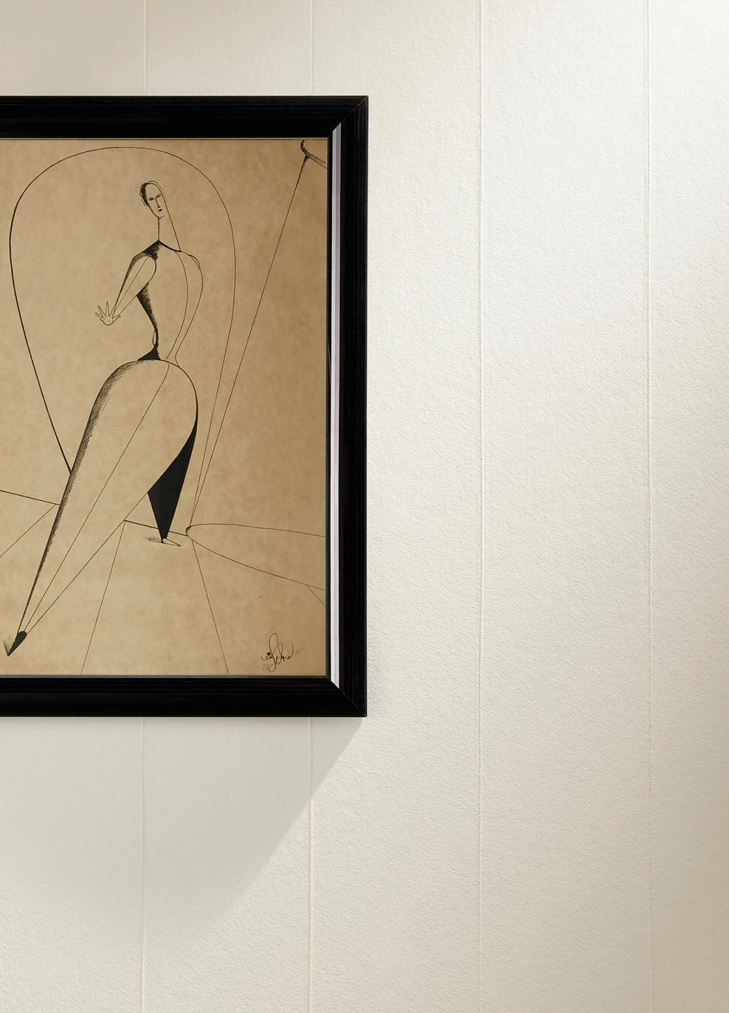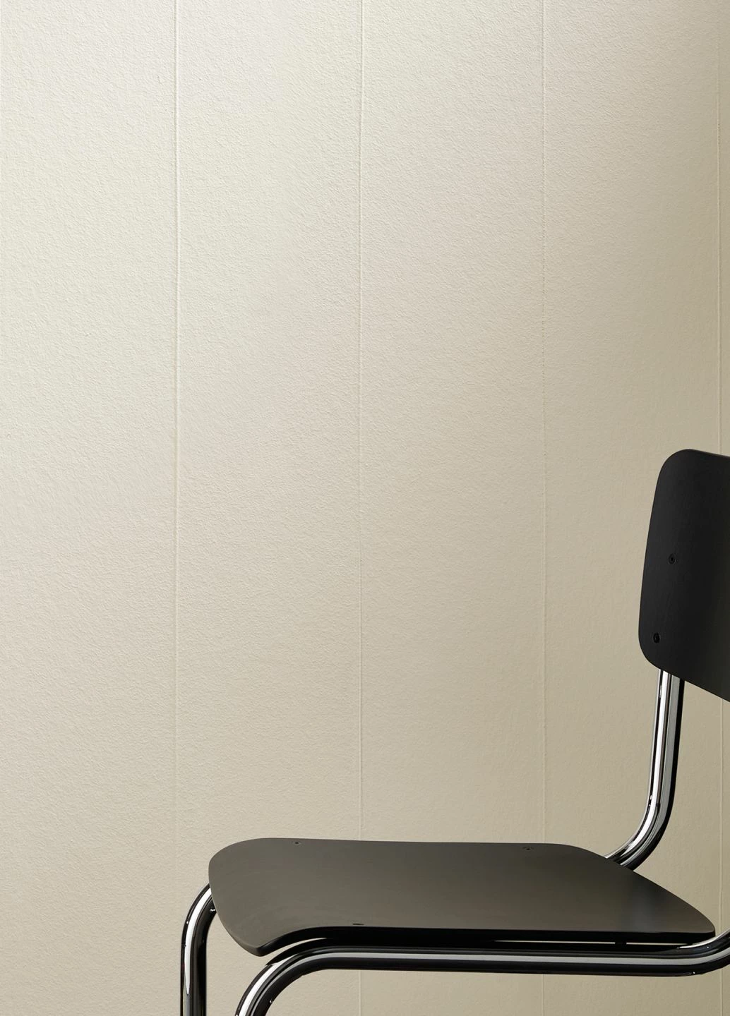 Das schlichte, unaufdringliche Design dieser Tapete wurde nach einem Originaldesign des Bauhauses aus den 20er Jahren neu produziert. Unauffällige Streifen sind in das Material eingeprägt und gliedern die Fläche der Wand mit ihrem Wechsel aus schmalen Linien und breiten Bändern. Überstrichen mit einer passenden Wandfarbe, spielt die Vliestapete ihre ganze zurückhaltende Eleganz aus.