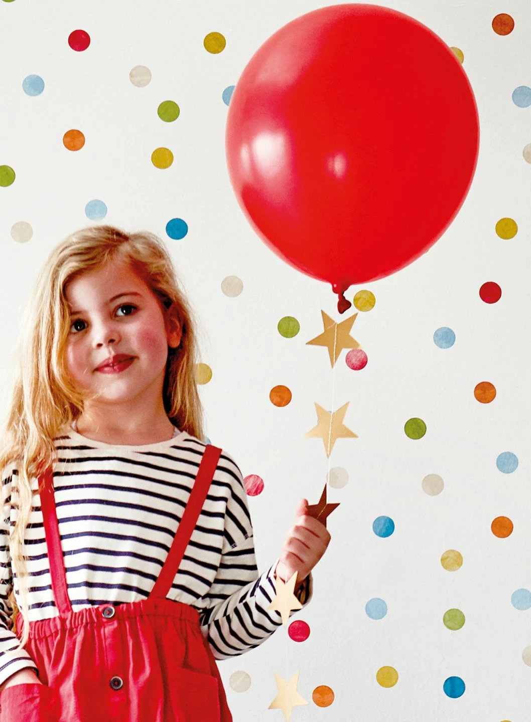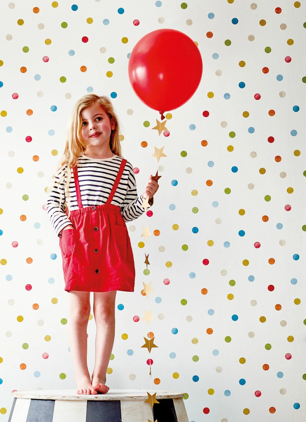 Eine Tapete, so farbenfroh wie eine unbeschwerte Kindheit: Kreisrunde Punkte in fröhlichen bunten Farben auf weißem Untergrund machen hier gute Laune. Die leichte Schattierung der Farben lässt die Punkte wirken wie mit Aquarellfarben getupft. Das Tapetenmuster regt die Phantasie an und bietet einen prima Hintergrund für die kreativen Spiele Ihrer Kinder – egal in welchem Alter.