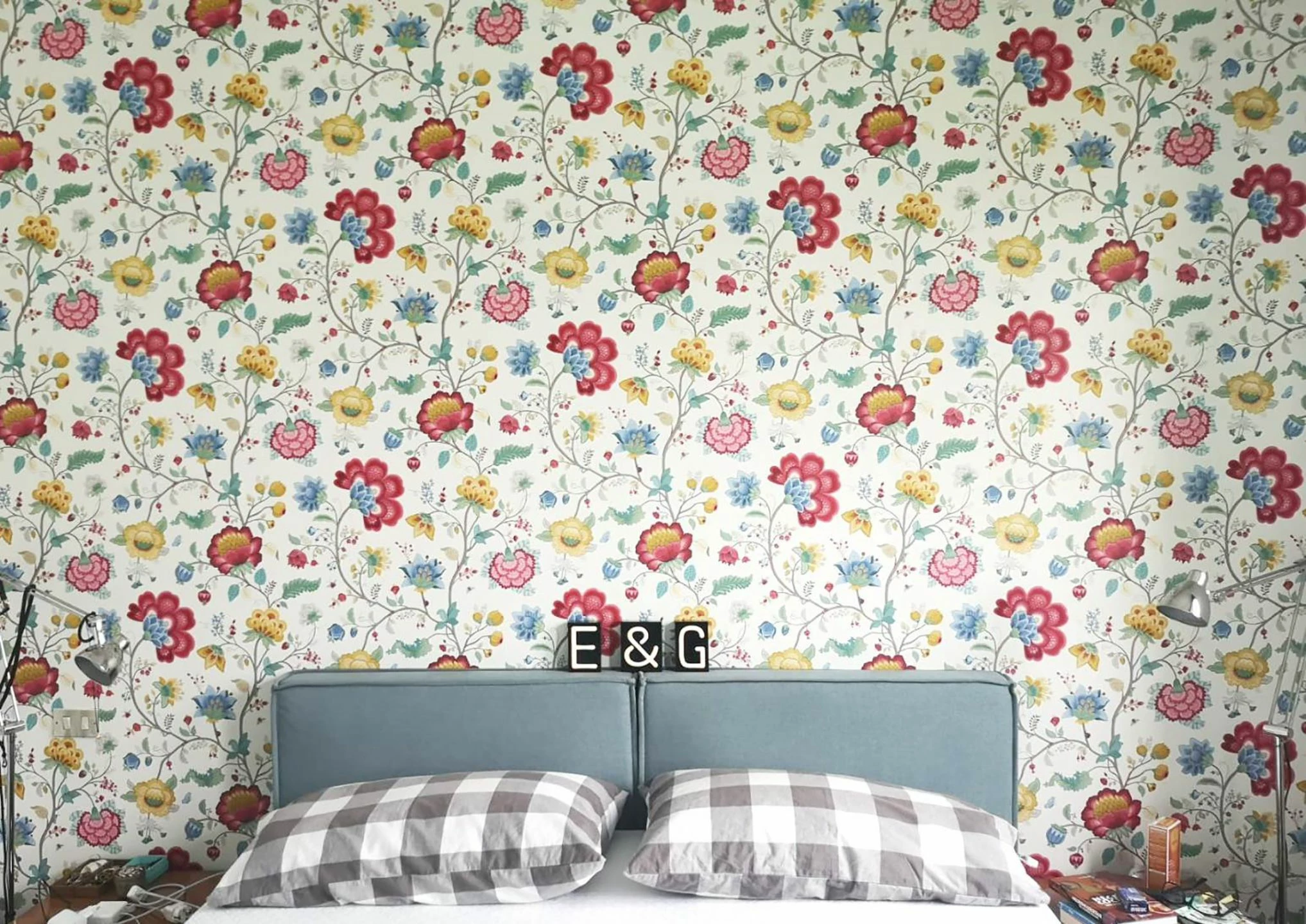 Die feinen Details der filigran gezeichneten stilisierten Blüten und Blätter kommen auf dem schlichten, cremeweißen Grund dieser Vliestapete besonders deutlich zur Geltung. Gleichzeitig lässt der helle Hintergrund die lebhaft leuchtenden Farbtöne – Himbeerrot, Goldgelb, verschiedene Schattierungen von Blau und Patinagrün – strahlend in den Vordergrund treten. Die an die orientalische Ornamentik erinnernden Blumen machen Ihren Raum zu einer hellen, freundlichen Oase der Lebensfreude.
