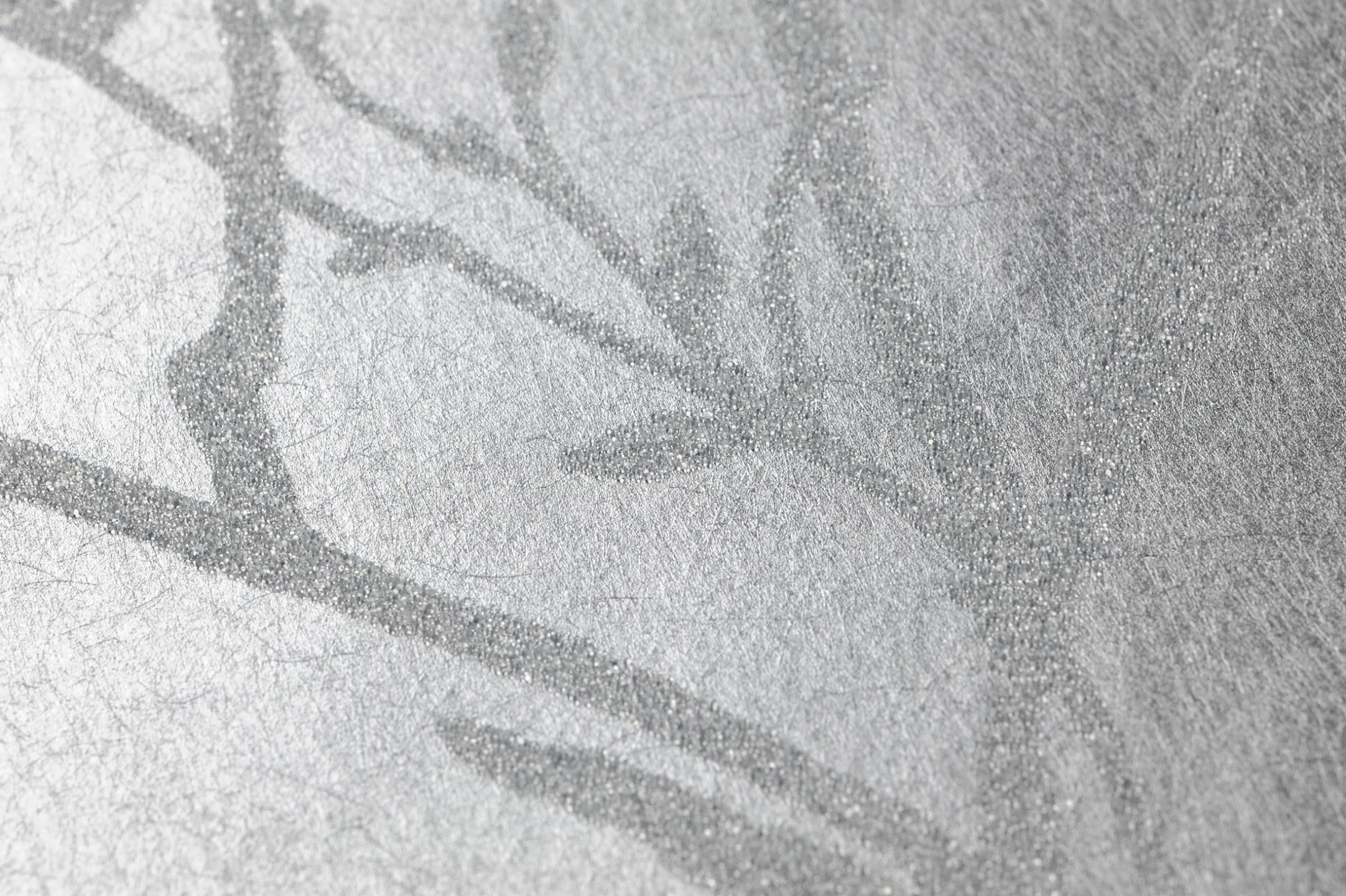 Ihr silberner Schimmer macht die Vliestapete „Bellewood“ zu einer exklusiven Schönheit. Glitzernde Zweige auf silbern schimmerndem Grund – Ton in Ton, aber durch die fühlbare Reliefstruktur der Oberfläche deutlich voneinander abgesetzt – schaffen eine mystische, magische Atmosphäre. Kleine Glasperlen funkeln wie Tautropfen im Licht. Ein elegantes Wohnzimmer oder ein luxuriöses Schlafzimmer bereichert „Bellewood“ um das gewisse Etwas.