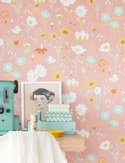 Pflück mir einen bunten Blumenstrauß – Tapete Bloom von Majvillan mit stilisierten Fantasieblumen lädt zu diesem Vergnügen gerne ein. Kontrastreich heben sich die Musterelemente in Cremeweiss, Hellgrün, Orange, Zitronengelb von der spannenden Grundfarbe Beigerot ab. Räume mit dem Plus an exzentrischer Romantik kommen mit dieser Designtapete voll und ganz auf ihre Kosten.