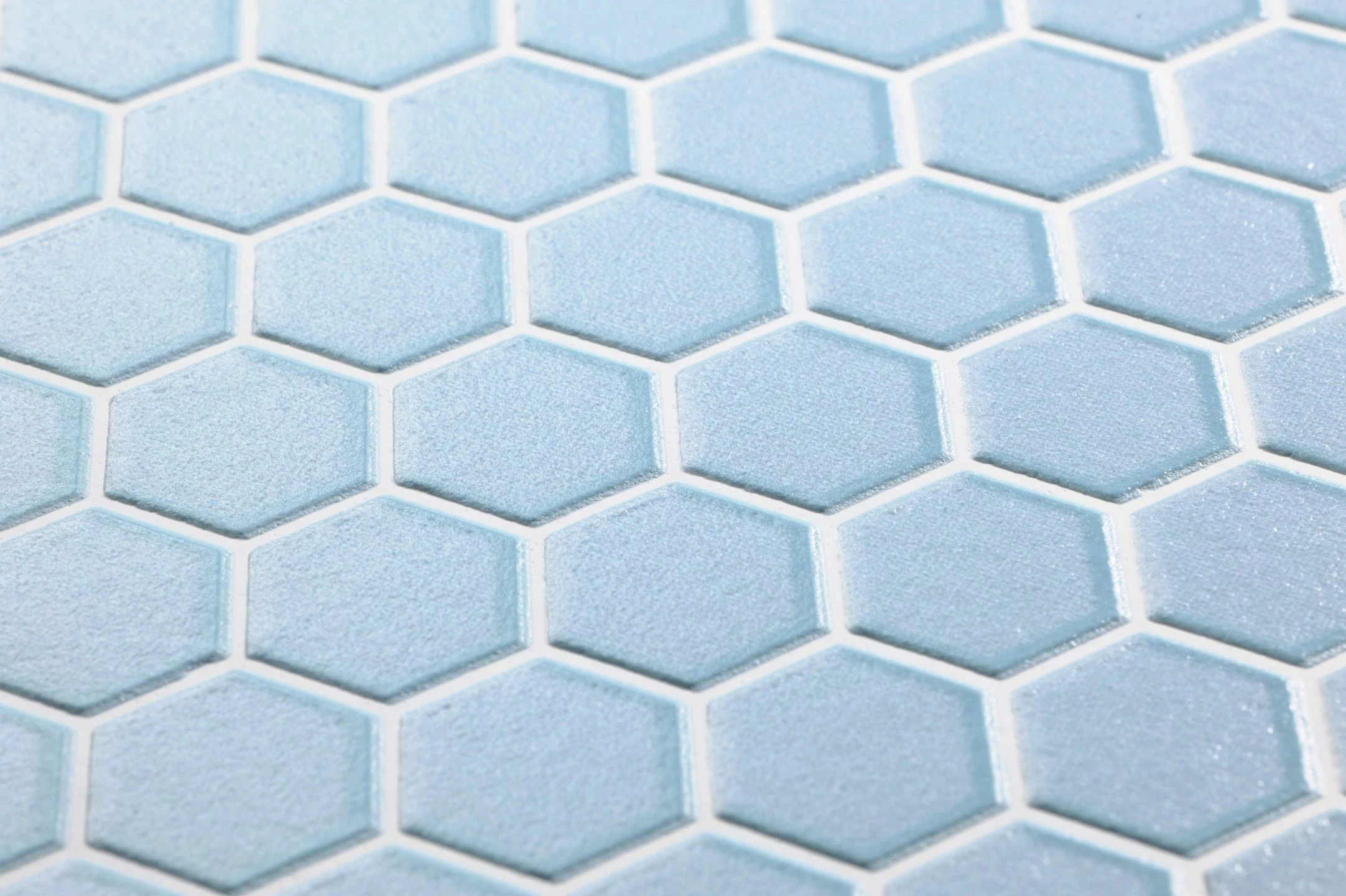 Wie kleine sechseckige Kacheln in hellem Pastelltürkis gestaltet das gleichmäßige geometrische Muster der Badezimmer-Tapete „Bogo“ Ihre Wände. Denn die weißen Fugen sind reliefartig in das Oberflächenmaterial eingeprägt. Das Vinyl der Tapetenoberfläche sorgt gleichzeitig dafür, dass „Bogo“ hoch waschbeständig ist und sich damit bestens für die Ausstattung eines attraktiven, hellen Badezimmers eignet.