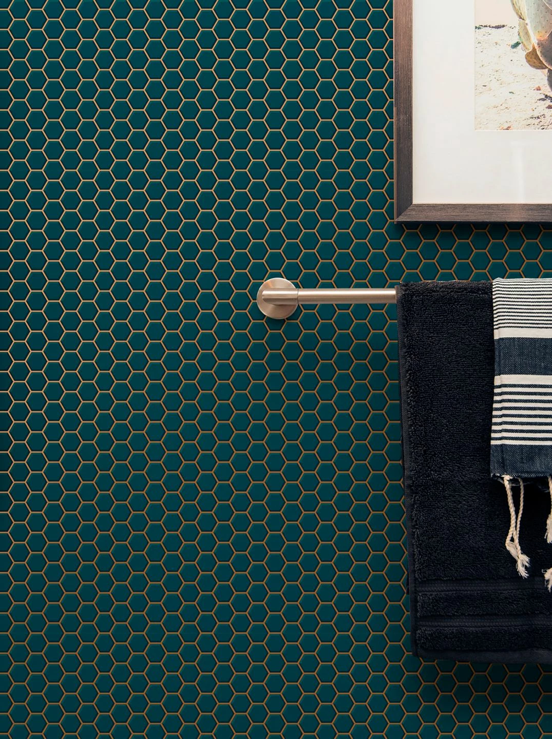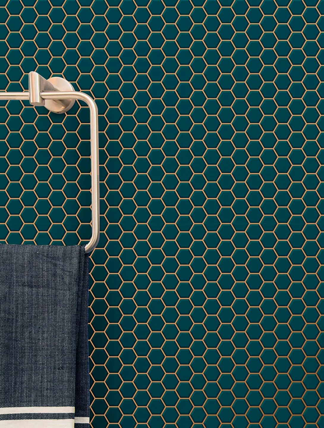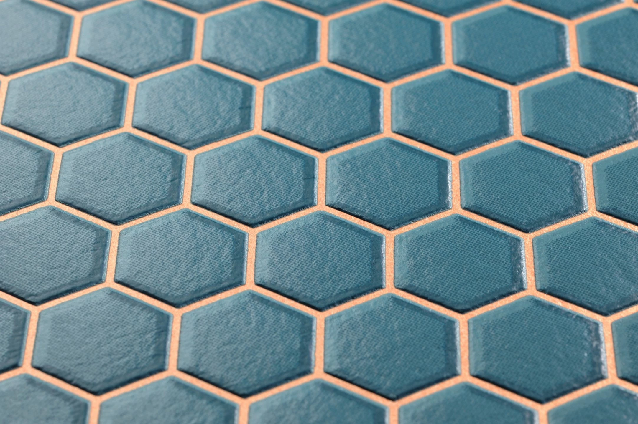 Ein gleichmäßiges wabenförmiges Muster in Wasserblau bestimmt den Charakter der Vliestapete „Bogo“. Die schimmernd kupferfarbenen Umrisse der Waben sind fühlbar in die Oberfläche der Tapete eingeprägt und lassen die einzelnen Sechsecke reliefartig hervortreten. Das Vinyl der Oberfläche macht die Tapete hoch waschbeständig, so dass sie perfekt dafür geeignet ist, Ihr Badezimmer zu einer exklusiven Wellness-Oase zu machen.