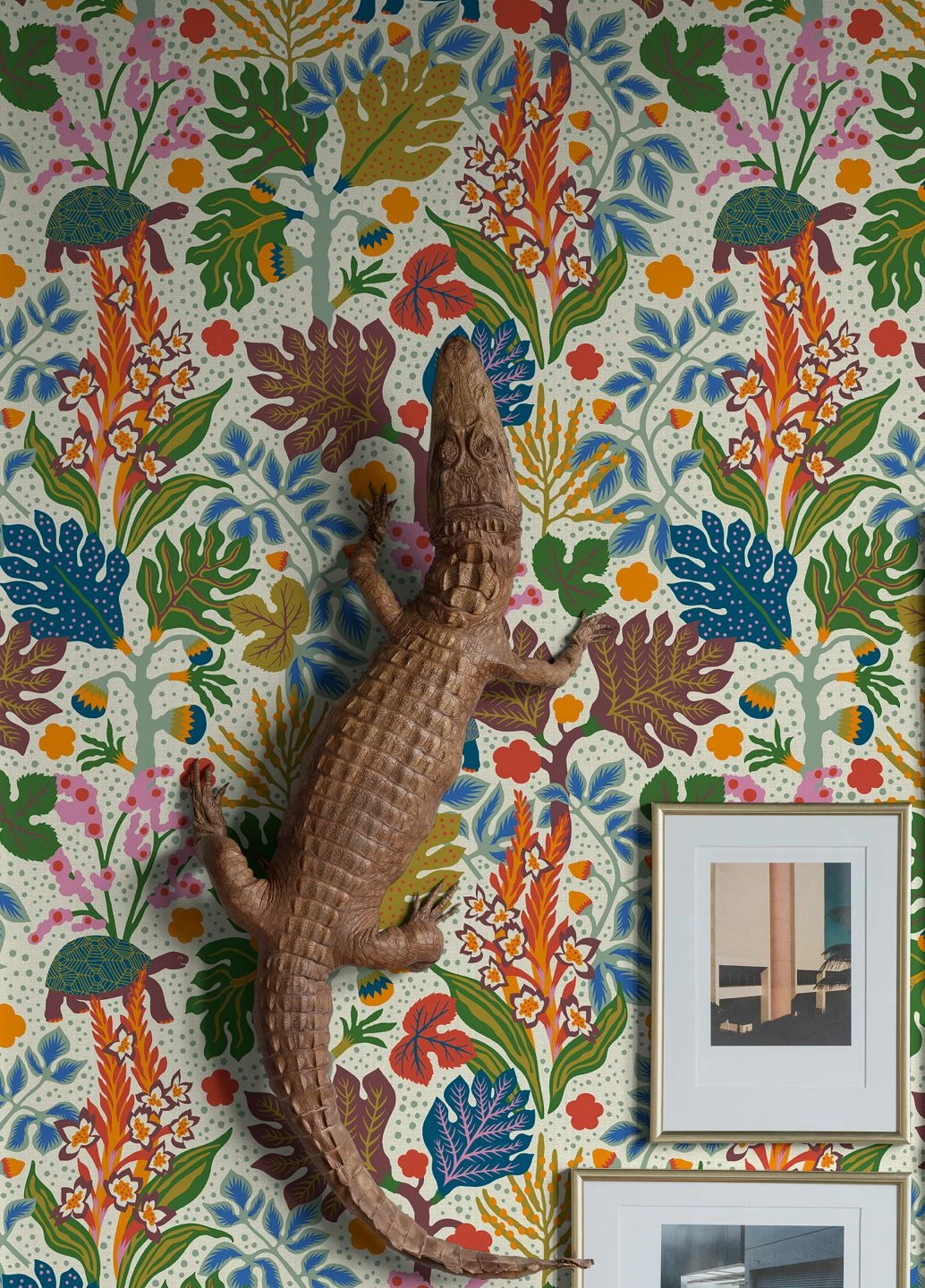 Eine fröhliche, farbenfrohe heile Welt entsteht mit Vliestapete Botanis an Ihrer Wand. In leuchtenden, klaren Grundfarben ist auf dem hellen, leicht schraffierten grauweißen Grund ein Meer von exotischen Pflanzen mit bunten Blüten und üppigen, formschönen Blättern abgebildet. Zwischen den Pflanzen ziehen große Schildkröten ihre Bahnen. Eine außergewöhnlich schöne Umsetzung der botanischen Tapete, die eine große Portion gute Laune mit sich bringt.