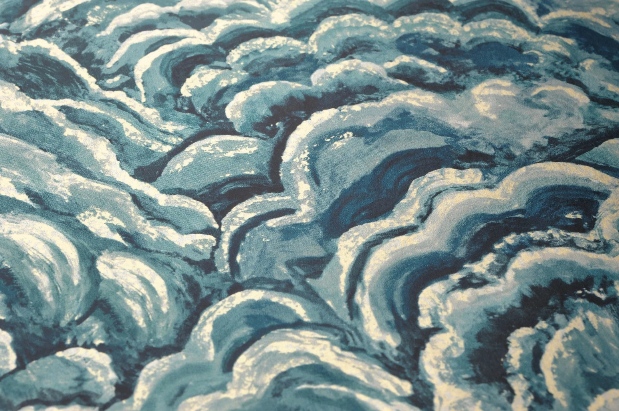 Stundenlang kann man am Ufer sitzen und auf das Meer hinausschauen – auf das ewige, kraftvolle Heranrauschen der Wellen, auf das Spiel der Sonne auf den Wellenkämmen. Wie ein Gemälde empfindet Breakers diese Eindrücke kunstvoll nach. Mit ihrer Vielfalt verschiedener Blautöne, den mit schimmerndem Gold und Silber angedeuteten Lichtreflexen und einer Dynamik, die die Bewegung der Wellen ausdrückt, holt die Vliestapete den Ozean als Kunstwerk zu Ihnen nach Hause.