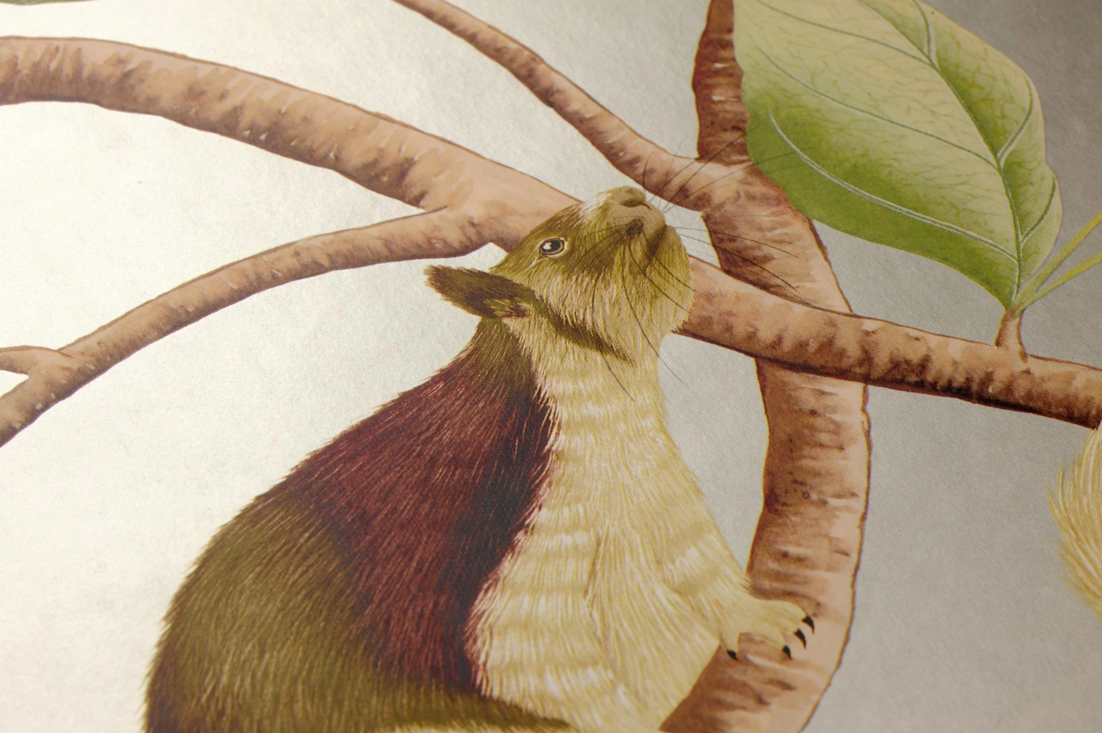 - DesignMalabar Riesenhörnchen, Zweige mit Blättern u. Blüten