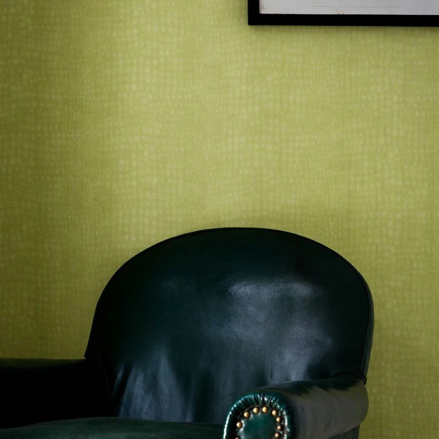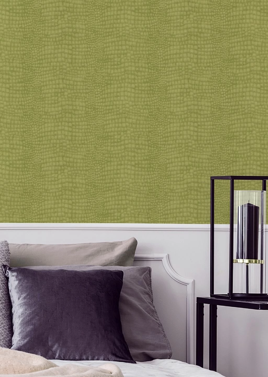 Klassische Krokodilleder-Optik in frischem, frühlingshaftem Grüngelb verleiht Ihren Wänden einen extravaganten, individuellen Charakter und passt zu weißen Möbeln ebenso gut wie zu dunklem Holz. Das typische Narbenbild ist fühlbar in die Oberfläche eingeprägt. Durch die Verwendung von Vinyl als Oberflächenmaterial ist die Tapete hoch waschbeständig und verschönert problemlos auch Ihr Badezimmer.