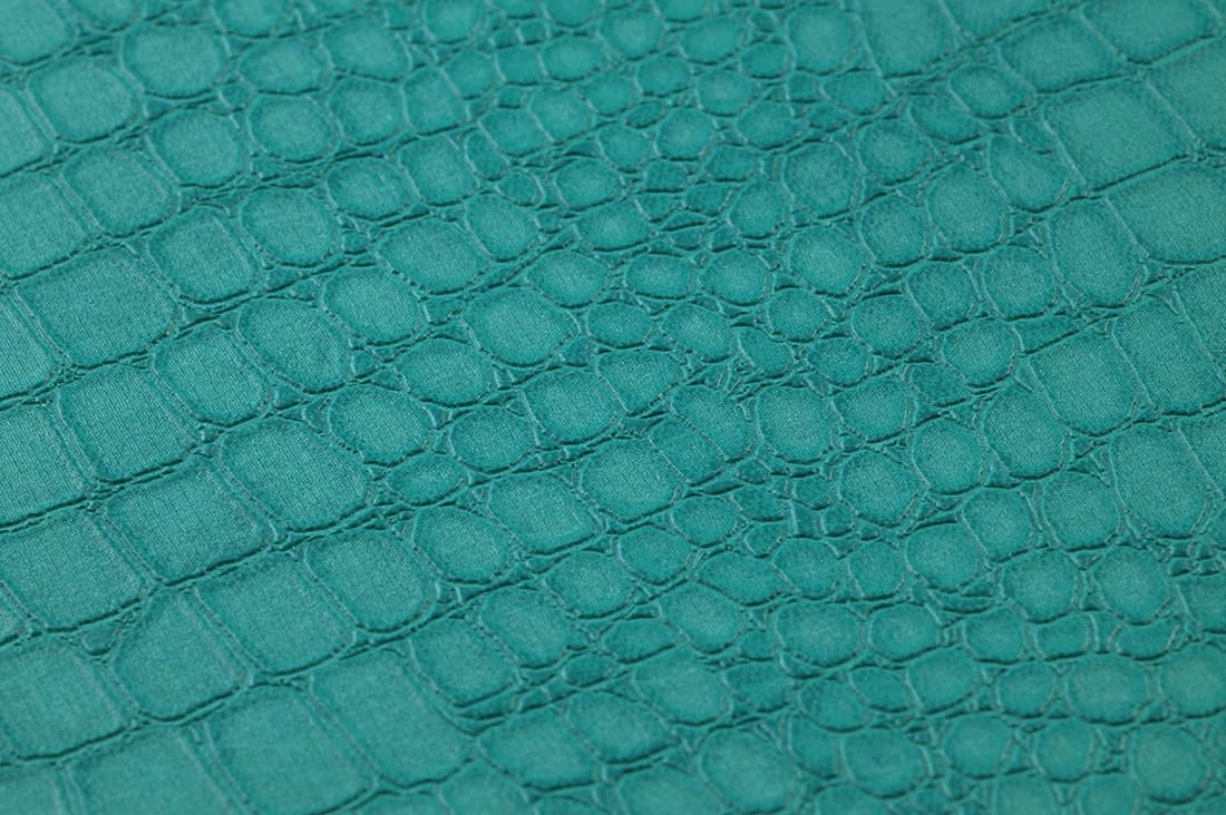 Trendiges Wasserblau in Synthese mit dem zeitlosen Schick von Krokodilleder – das ergibt zusammen einen extravaganten, einzigartigen Wandschmuck. Die in die Tapetenoberfläche geprägte typische Narbenstruktur fügt dem optischen Genuss noch einen haptischen Eindruck hinzu. Die Oberfläche aus Vinyl ist hoch waschbeständig und eignet sich wunderbar für ein Badezimmer. Helle Möbel sind eine attraktive Ergänzung.