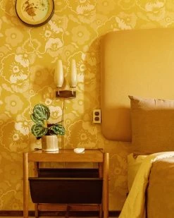 Die Siebziger Jahre lassen grüßen mit stilisierten Blüten und in anregendem Zitronengelb. Der immerwährende Sommer zieht in den Raum ein und mit ihm gleich die gute Laune. Vintage-Fans werden ebenso begeistert sein wie die Anhänger von leuchtenden Blumentapeten, die Wärme, Sonne, Offenheit und Optimismus versprühen.