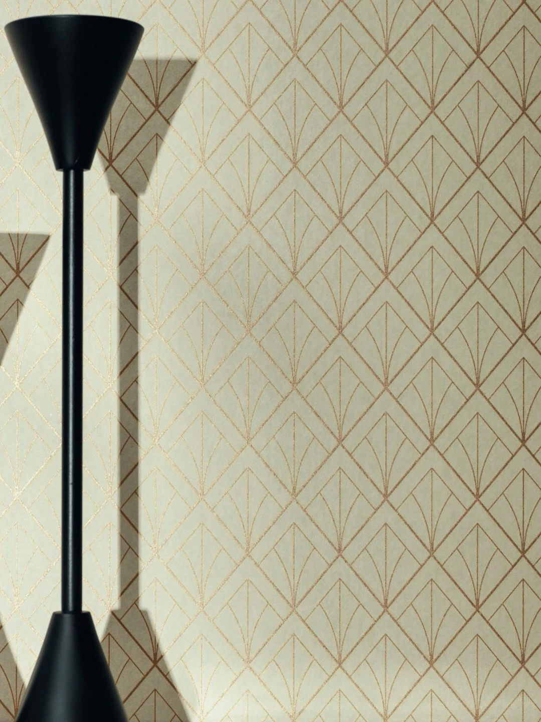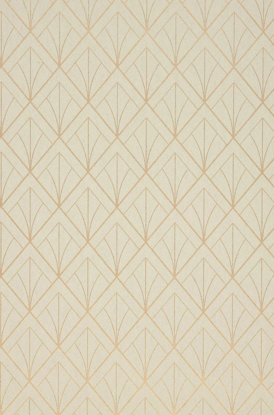 Elegante glatte Formen, perfekte Symmetrie, metallische Farben – Die Art Deco Strömung hat bis heute nichts von ihrem Reiz verloren. In Design Tapete Catriona zeigt sich das geometrische Rautenmuster in Gold, das durch Licht glamourös aktiviert wird. Zusammen mit dem eierschalenfarbenen Grund ergibt sich eine subtile Eleganz für stilvolle Räume.
