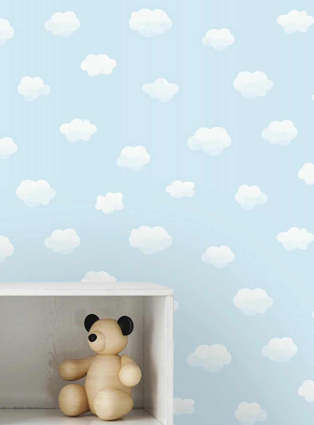 Solch ein blauer Sommerhimmel mit weißen Schäfchenwolken lädt Mädchen wie Jungen zum vergnügten Träumen ein. Herrliche Ruhe vermittelt die Kindertapete, die durch frisches Hellblau einen sehr farbstarken Aspekt im Raum setzt. Besonders die Kleinsten können durch diese ansprechende Designtapete erste Formen- und Farbenerfahrungen machen.