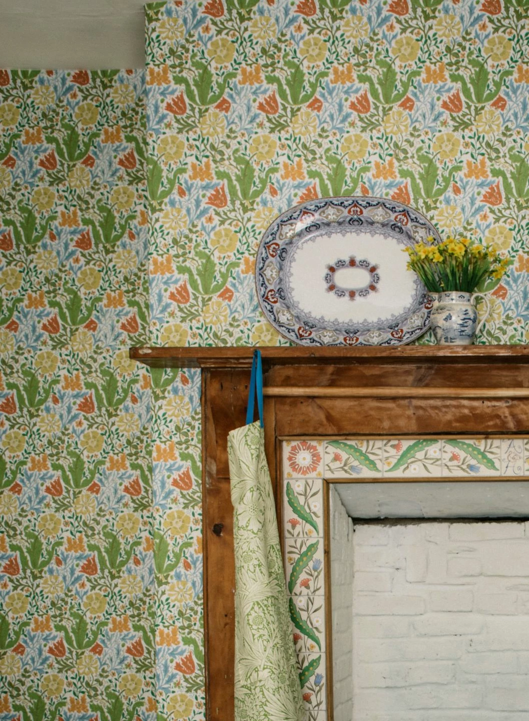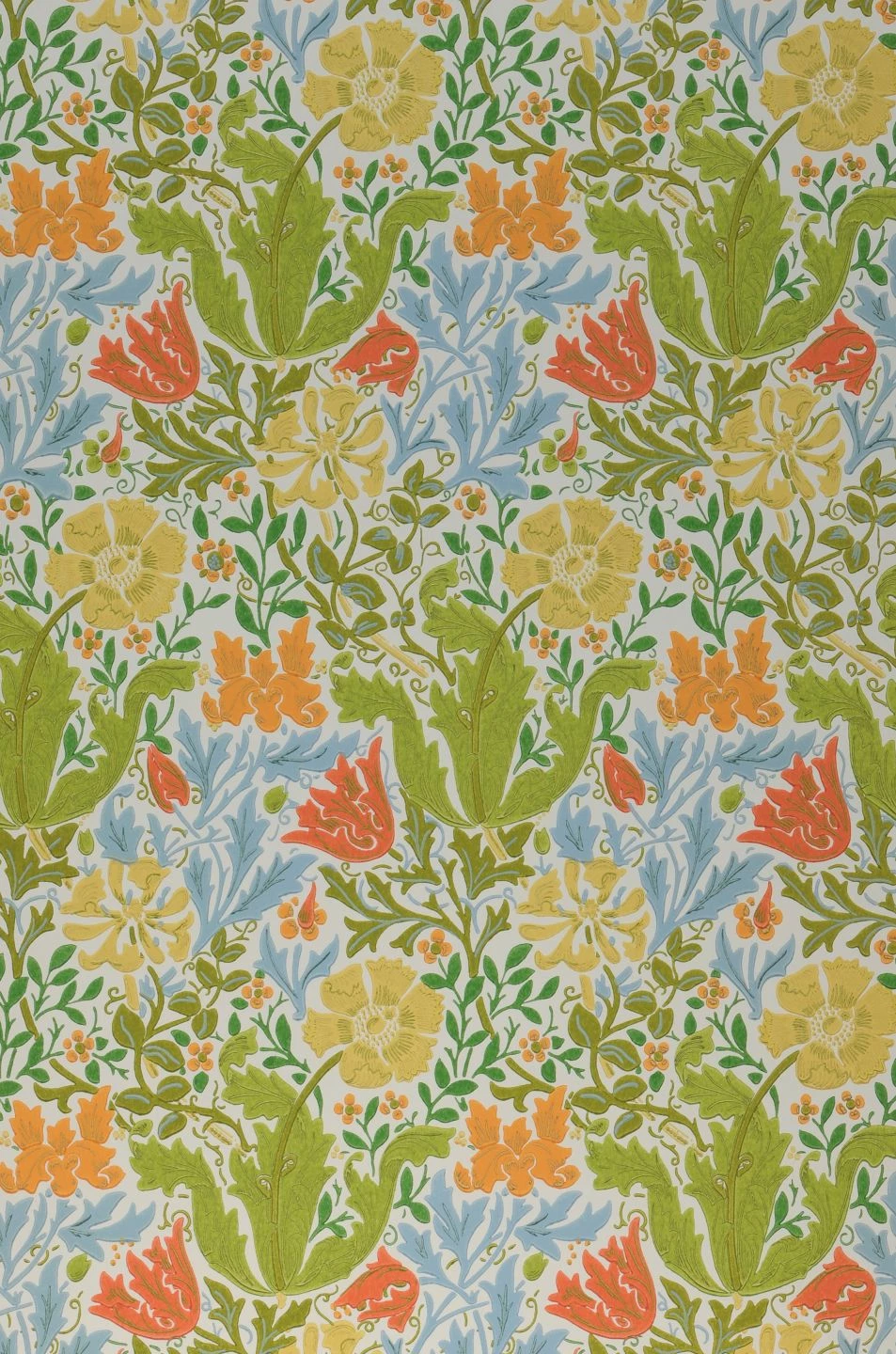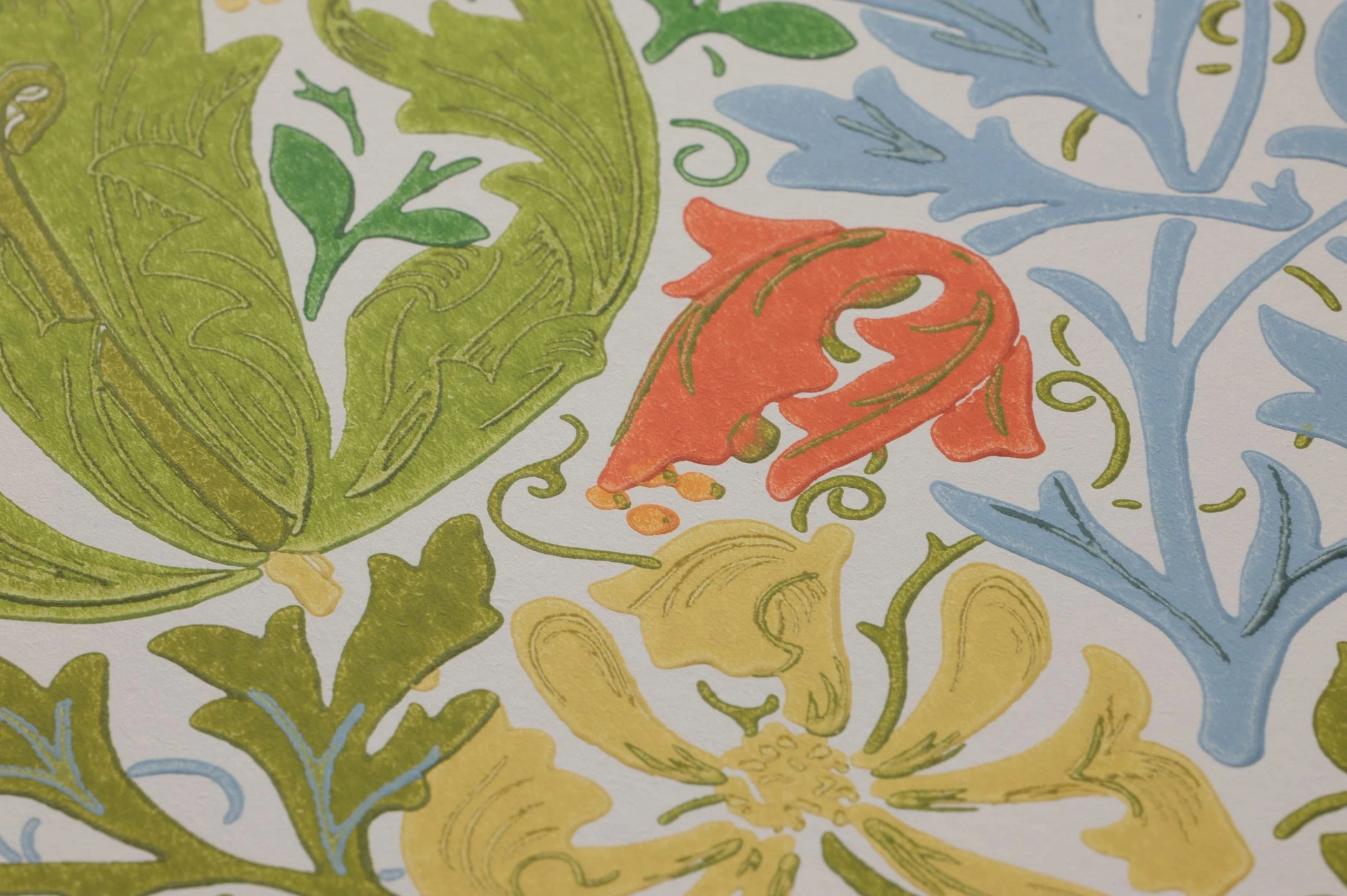 - MusterfarbeGrüntöne, Hellgelb, Orange, Orangerot, Pastellblau