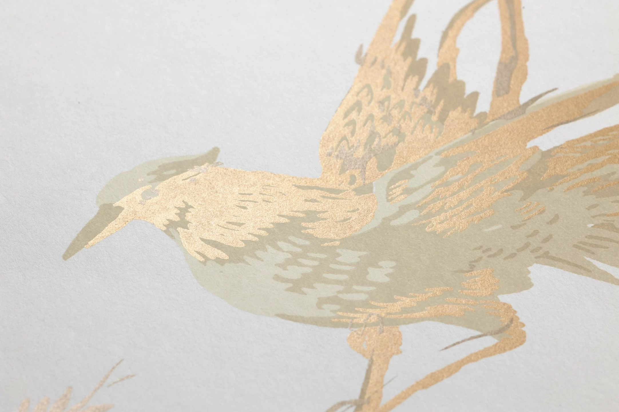 Aus einem orientalischen Märchen scheint das zarte Design mit seinen exotischen Vögeln und den Zweigen voller Blüten und feinen Blättern zu stammen. Schimmerndes Braun und Perlgold zwischen den Creme- und Grautönen setzen auf dem weißen Grund wunderschöne Akzente. Der Farbauftrag im Leimdruckverfahren macht die Vliestapete zu einem ästhetischen Genuss, mit dem Sie eine perfekte Kulisse für Ihre Einrichtung im asiatischen Stil schaffen.