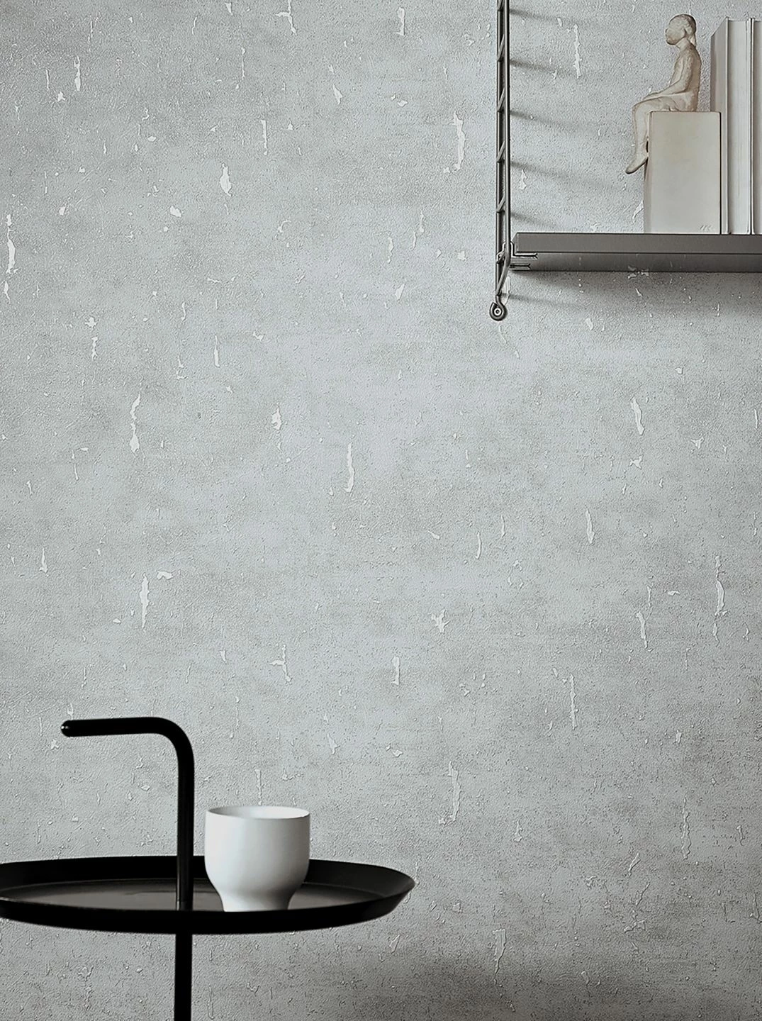 Die unverwechselbare Optik von echtem Kork entsteht durch das Zusammenspiel zwischen hellen Nuancen von Grau und schimmerndem Silber Metallic. In das Vinyl der Tapetenoberfläche ist darüber hinaus die Struktur des Naturmaterials als feine, fühlbare Struktur eingeprägt. Deshalb wirkt diese Kork-Imitation so natürlich. Für Shabby Chic oder Industrial Chic ist Cork Illusion eine Kulisse voll zurückhaltender Coolness.