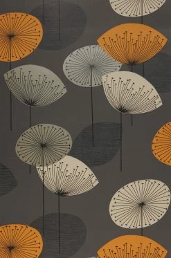 Sehr warm und mit einer kräftigen Prise Retro-Spirit zaubert die Grafiktapete mit stilisierten Löwenzahnblüten ein authentisches Vintage-Feeling in jeden Raum. Anthrazit, Gelborange, Hellelfenbein, Perlbeige und Schwarz bewirken eine dezente optische Verschmelzung der Stilblüten und verströmen beflügelnde Energie.