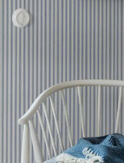 Ein Streifenmuster mit Weitblick, das sich verschiedene Perspektiven zu Eigen macht, setzt das I-Tüpfelchen in romantisch angehauchten Räumen. Von nah und fern betrachtet, ergibt sich eine jeweils neue Wahrnehmung, die sich auch auf die Farbnuancen bezieht. Die pflegeleichte Vliestapete in Graublau und Weiß fühlt sich besonders in maritim-rustikalen oder edlen Looks wohl.