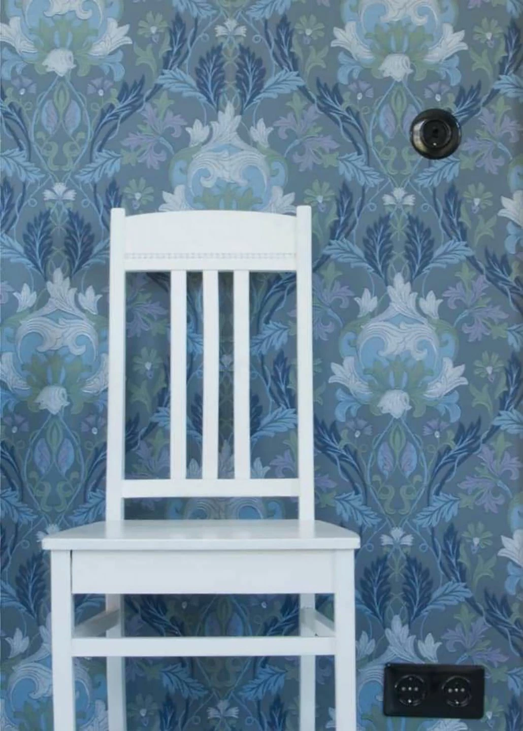 Die stilisierten und kunstvoll angeordneten Blüten, Blätter und Ranken des Jugendstils in sanften Grün- und Blautönen üben eine intensive Wirkung aus. Das klassische, im Leimdruckverfahren hergestellte Tapetenmuster gewinnt eine märchenhafte, beruhigende Ausstrahlung, wie geschaffen für ein entspannendes Schlafzimmer oder ein gemütliches Wohnzimmer. Weiße Möbel oder weitere Töne aus der blaugrünen Farbfamilie, antike Elemente oder Shabby Chic, Denisa passt sich an eine Vielzahl von Stilrichtungen an.