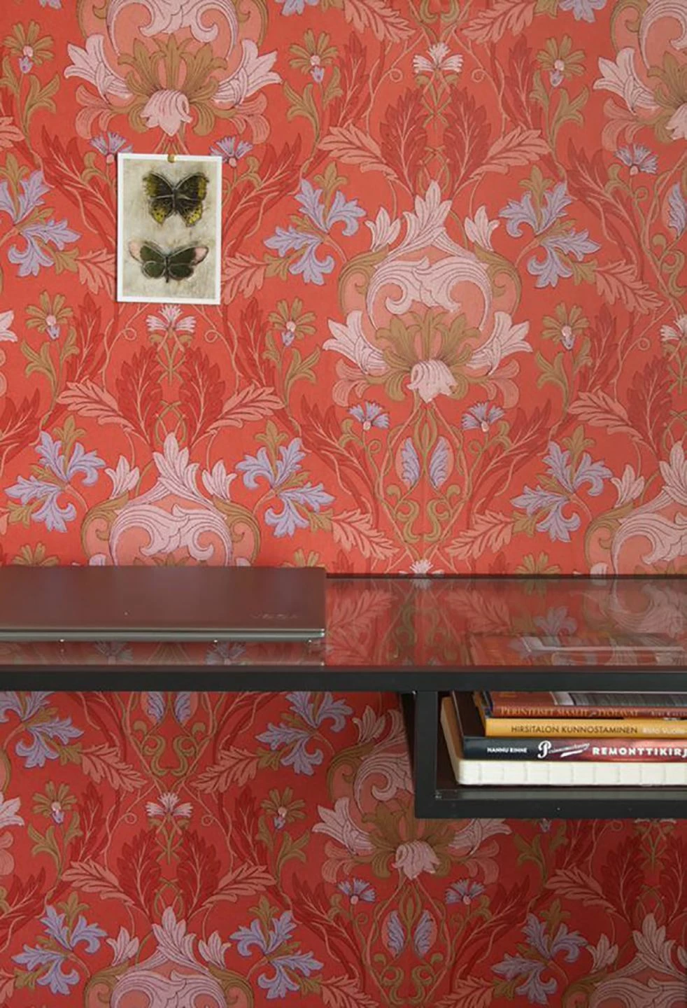 Leuchtendes, belebendes Rot bringt Wärme und Lebensfreude in Ihre vier Wände. Mit ihrem klassischen Design und den stilisierten Blüten und Blattranken, wie sie zum Jugendstil dazugehören, verkörpert Denisa klassische Eleganz und ein klares Bekenntnis zur Farbe. Die Papiertapete wurde mit dem traditionsreichen Leimdruckverfahren hergestellt und ergibt so ein stimmiges Bild. Dunkle Möbel sind eine starke Ergänzung.