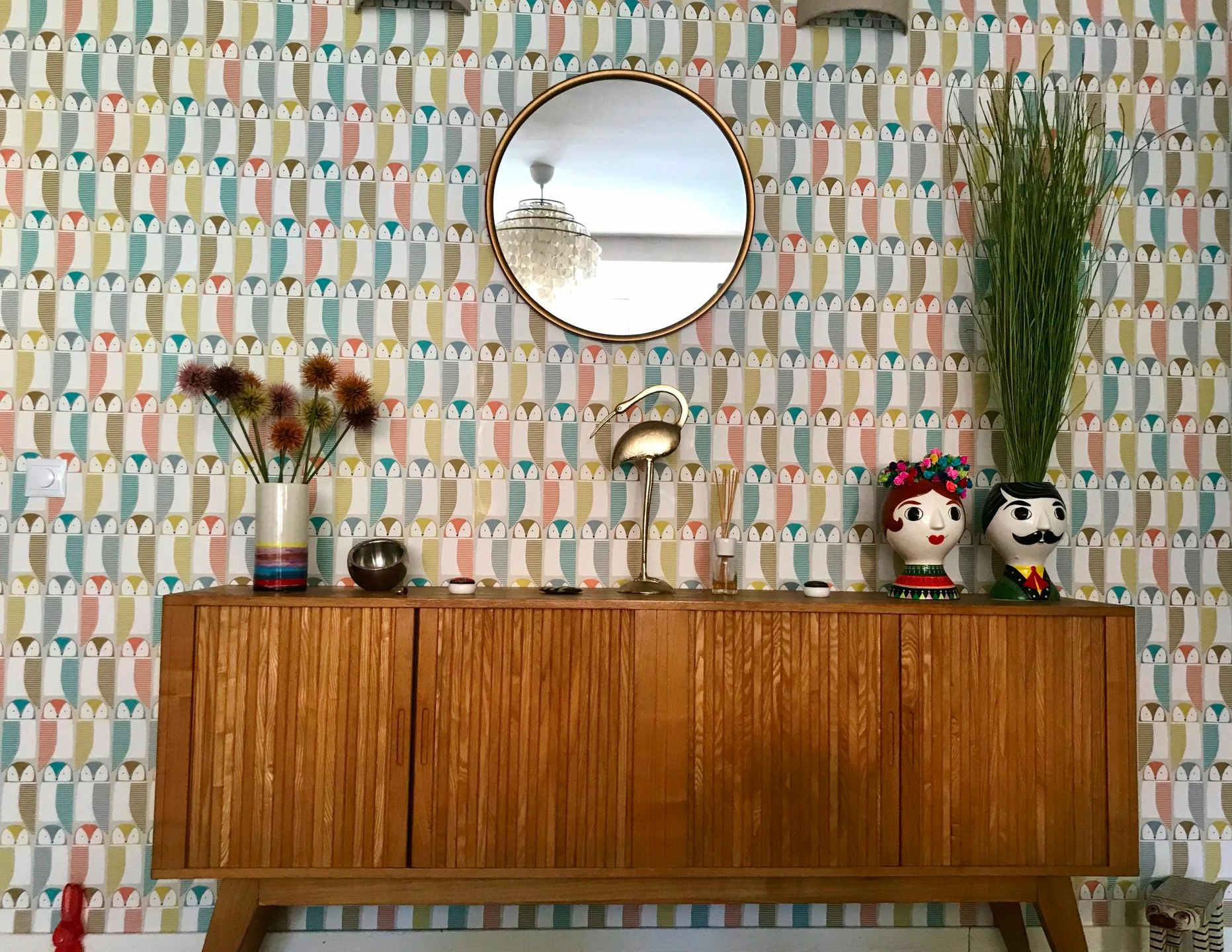 Diese Eulenparade hat es in sich. Vintage Tapeten der Moderne mixen Geometrie und Gegenständliches und bilden daraus einmalige Design Schmuckstücke für die Wand. Erleben Sie die außergewöhnliche Wirkung in Diele, Flur, Kinderzimmer oder als witzige Idee für das Gäste-WC. Auf diese Eulen muss man einfach schauen.