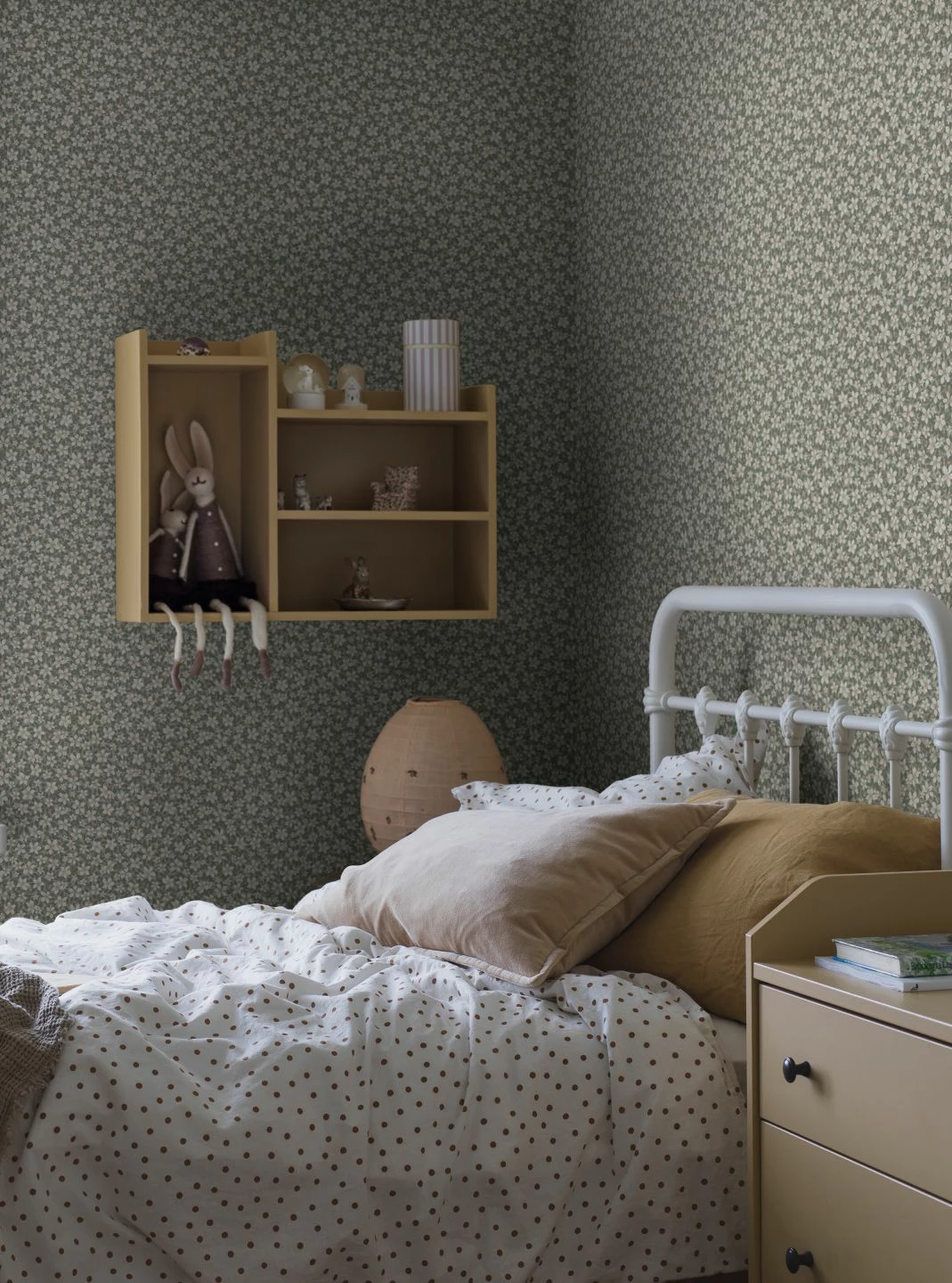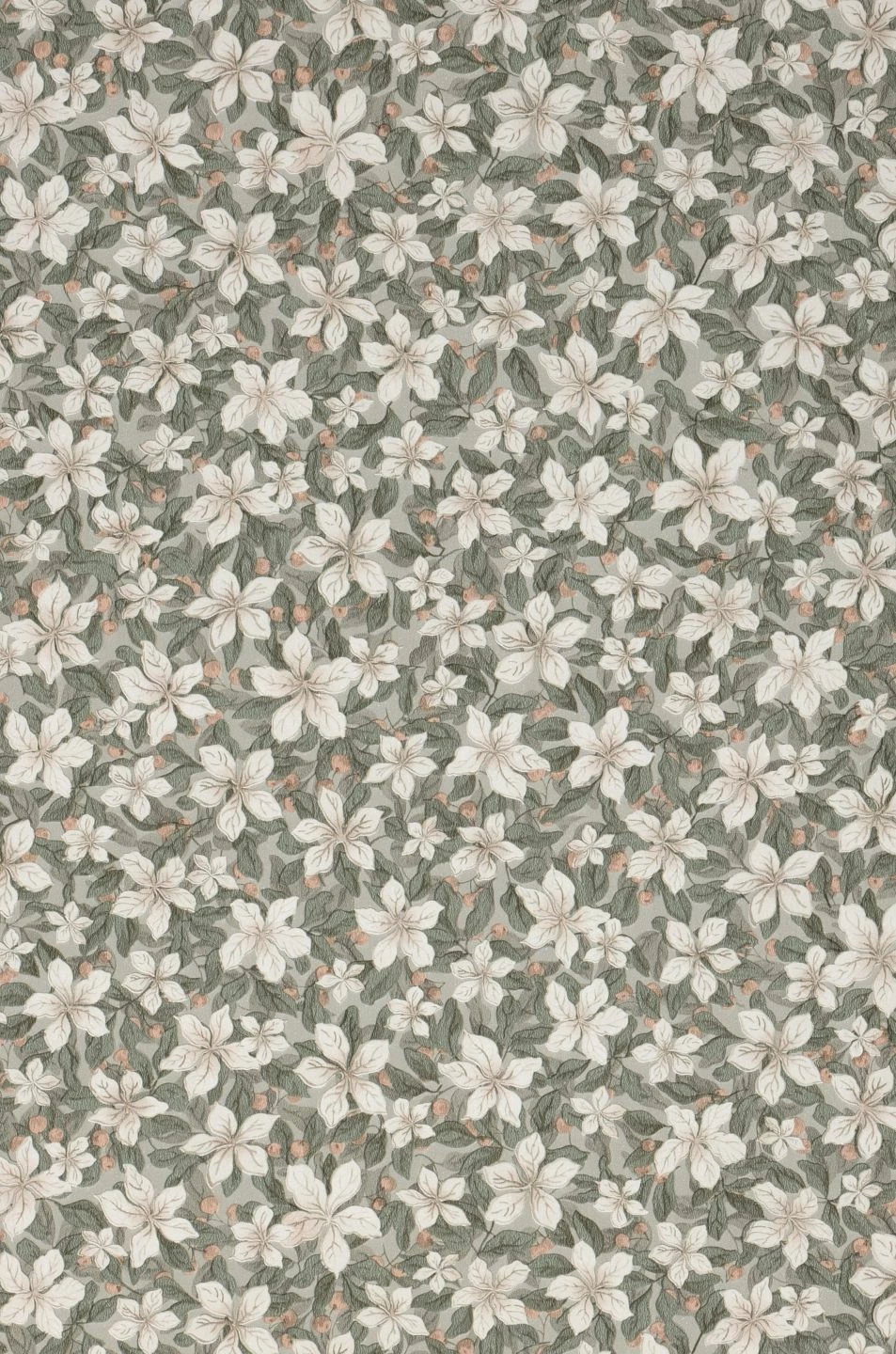 Das Beige und Cremeweiß der unzähligen Blüten und das Kieferngrün der Blätter ergeben zusammen mit dem Zartgrün des Untergrunds eine faszinierende, harmonische Farbkombination. Das Meer aus schön gezeichneten Blüten und Blättern, das Ihren Raum wie eine dichte, über und über blühende Hecke umgibt, verströmt ein Gefühl von Geborgenheit und Natürlichkeit, das besonders wirkungsvoll Ihre Einrichtung im skandinavischen oder auch im Landhausstil unterstützt.