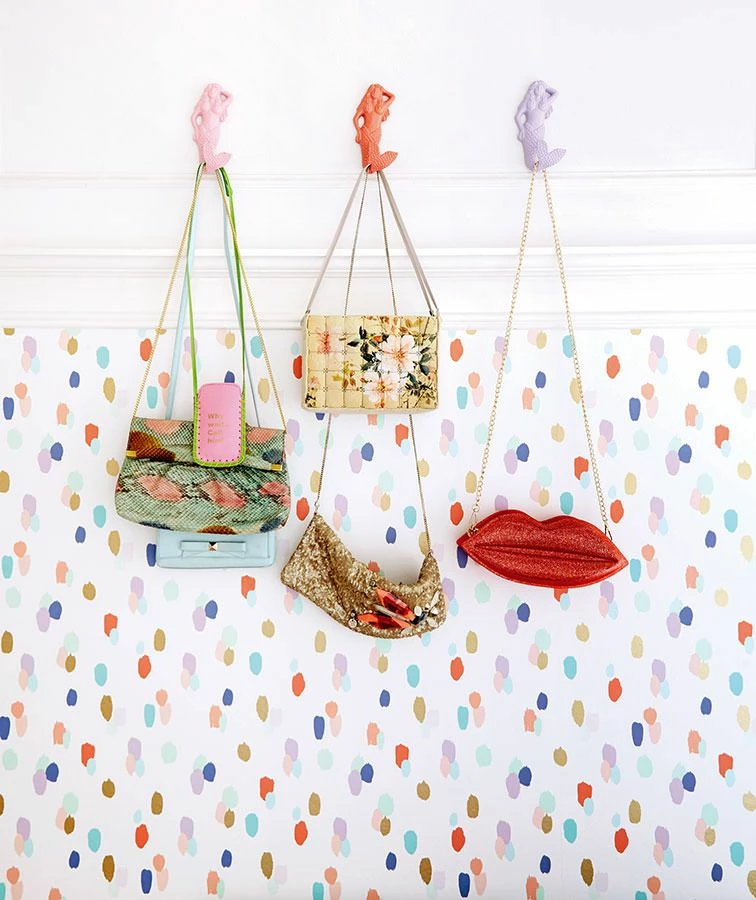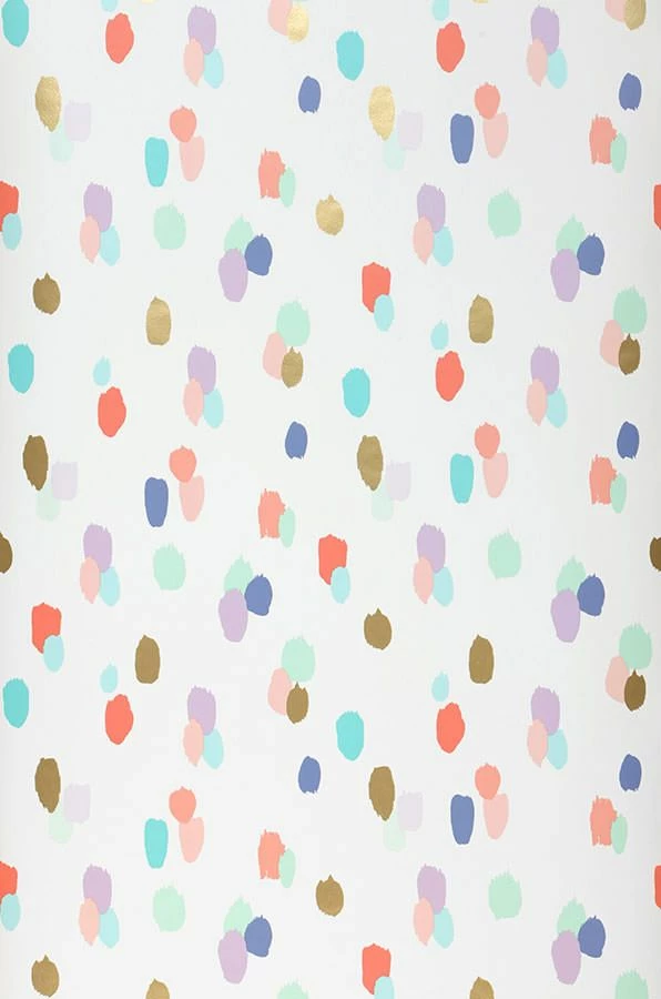 Pinseltupfen wie zufällig auf der Tapete verteilt, vertreiben graue Wolken und wirken wie ein bunter Regen, der keine Traurigkeit erlaubt.