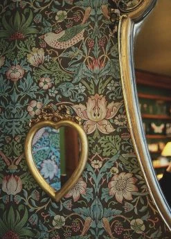 Das üppige und gleichzeitig Ordnung ausstrahlende Muster aus verschlungenen Blättern und Ranken, Blüten, Früchten und Vögeln ist ein Originaldesign des britischen Symbolisten William Morris. Die edle Anmutung der Tapete in aufeinander abgestimmten Farben, in denen immer wieder ein ruhiges Hellblau auftaucht, regt zum Träumen an und verleiht Ihrem Raum eine unverwechselbare Note.