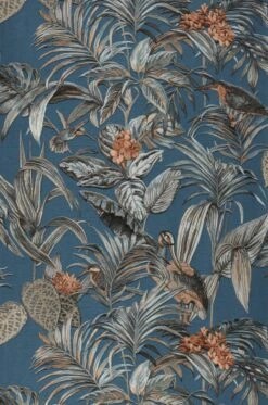 An eine handgearbeitete Stickerei auf gewebtem Untergrund erinnert die elegante Vliestapete Flonie mit ihrer feinen, in das Vinyl der Oberfläche geprägten Struktur. Die abgebildeten exotischen Vögel, Blätter und Blüten in den sanften Grau-, Blau- und Orangebrauntönen heben sich so noch mehr vom grünblauen Grund ab. Zudem ist die Oberfläche hoch waschbeständig und dadurch auch für Ihr Bad bestens geeignet.