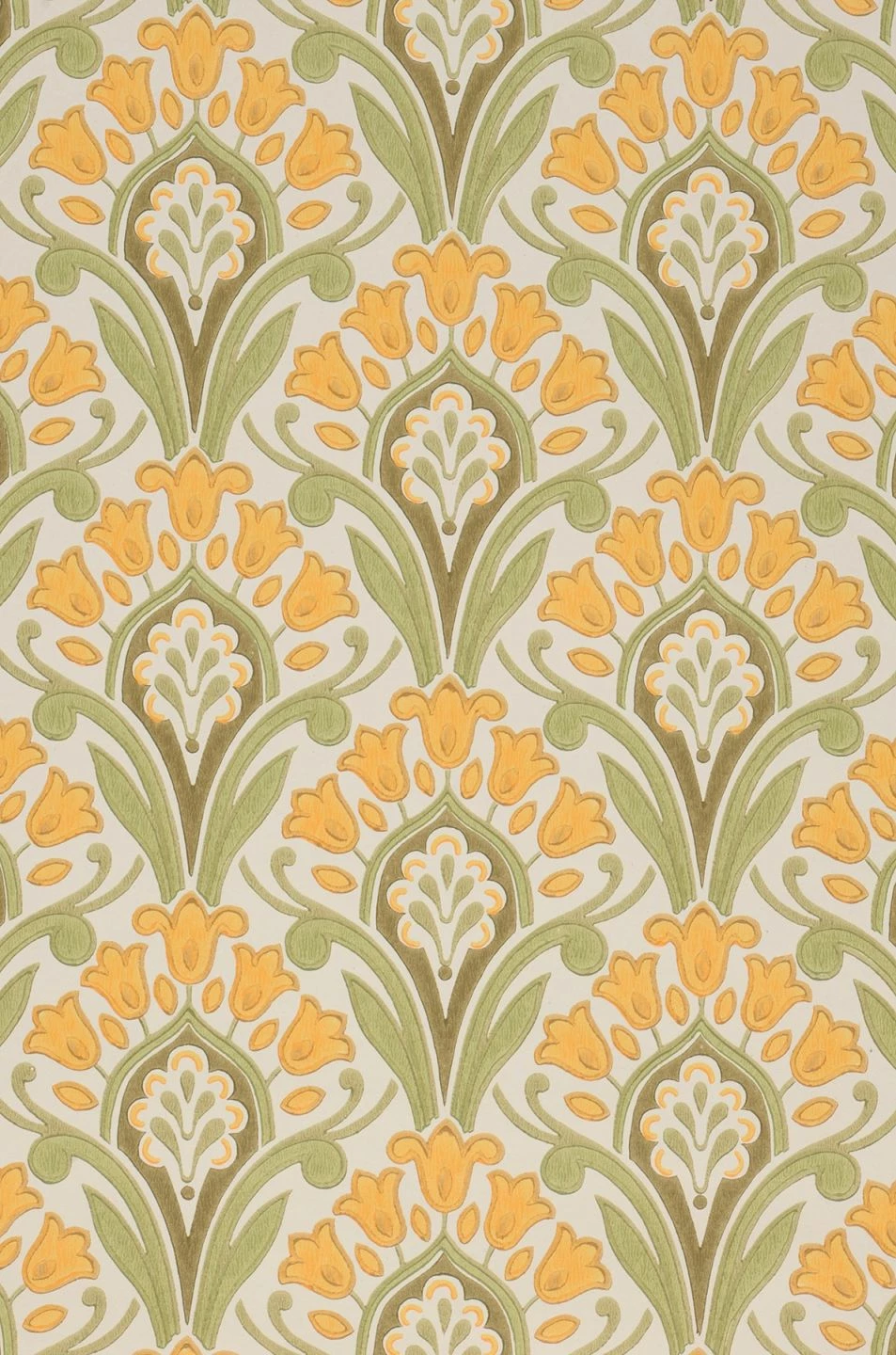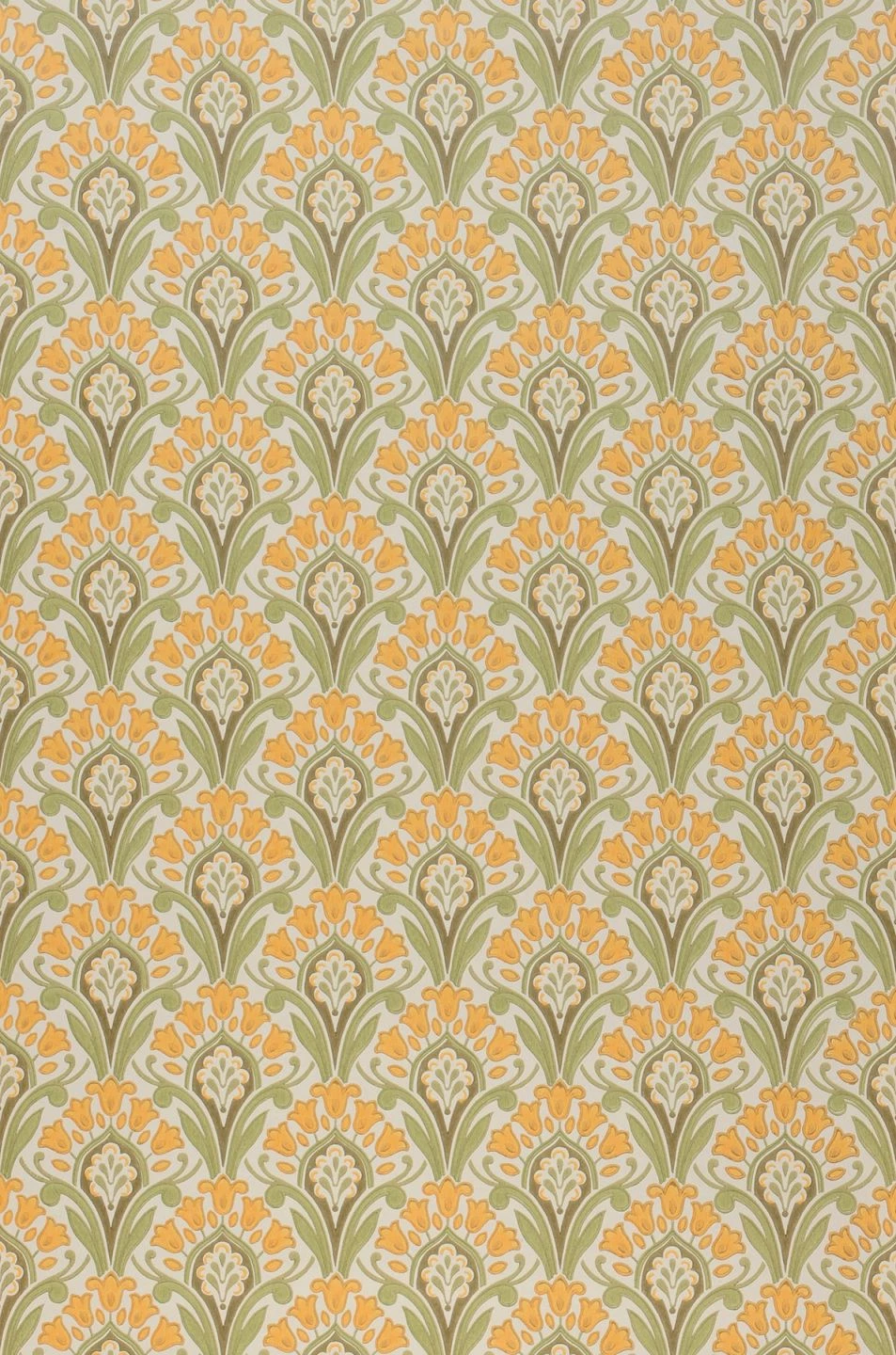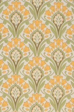 Zeitlose Klassik in nostalgisch anmutendem Maisgelb, Farngrün und Khakigrau auf cremeweißem Grund verschönert Ihren Raum mit einem symmetrischen, regelmäßigen Muster aus Jugendstil-Ornamenten. Die stilisierten Blumen sind im traditionellen Leimdruckverfahren auf die Papiertapete aufgedruckt. So unterstreicht Florence ihren Ursprung im klassischen Tapetendesign und verströmt den Eindruck von Qualität und Hochwertigkeit.