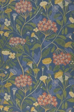 Phantasievolle Formen haben die Blüten und Blätter, die dicht an dicht auf dieser Vliestapete wachsen. Versehen mit filigranen Details, geben sie die ganze Fülle der Natur wieder. Blüten und Blätter in Taubenblau, Sandgelb, Lachsrot, Elfenbein und Hellgrün leuchten aus dem blaugrauen Untergrund hervor und verwandeln Ihren Raum in eine farblich perfekt abgestimmte Blumenwiese.