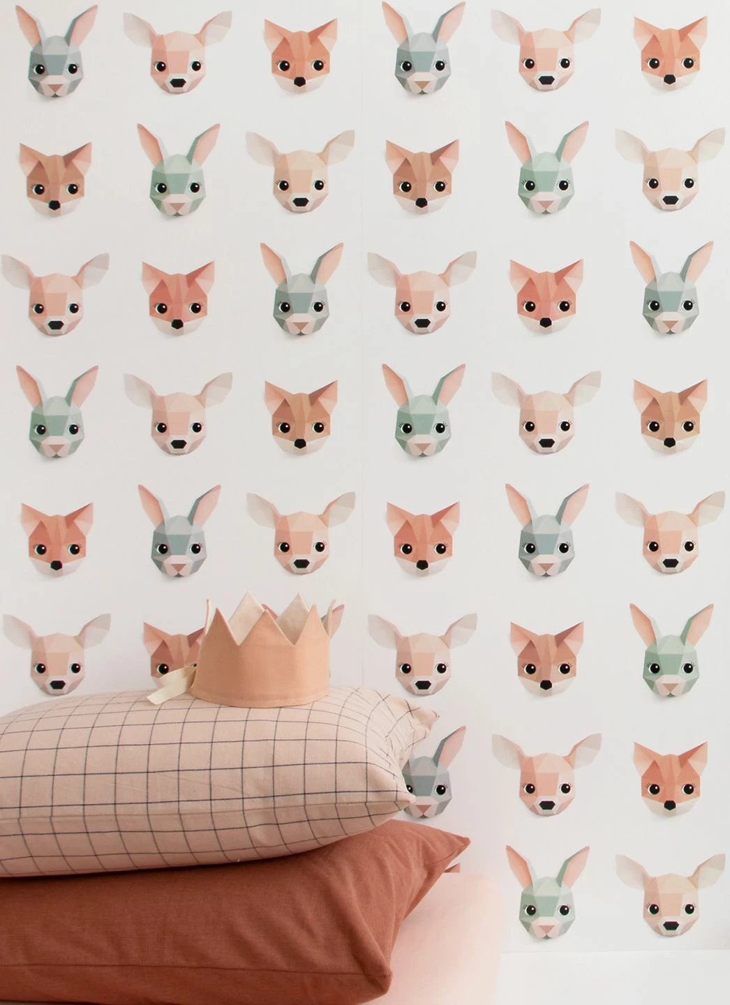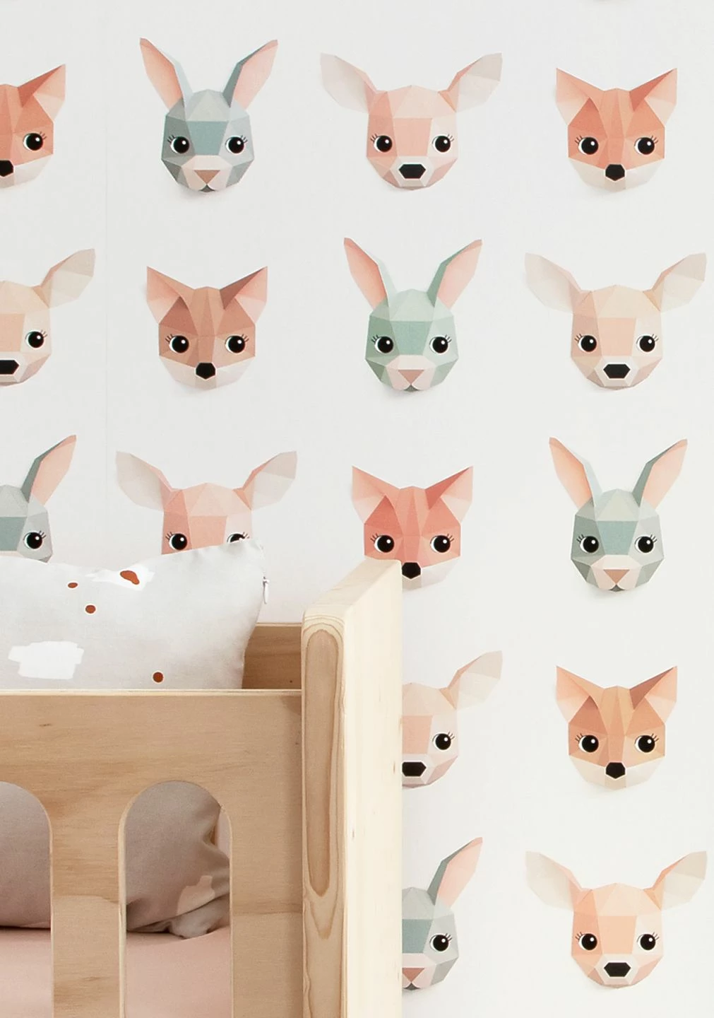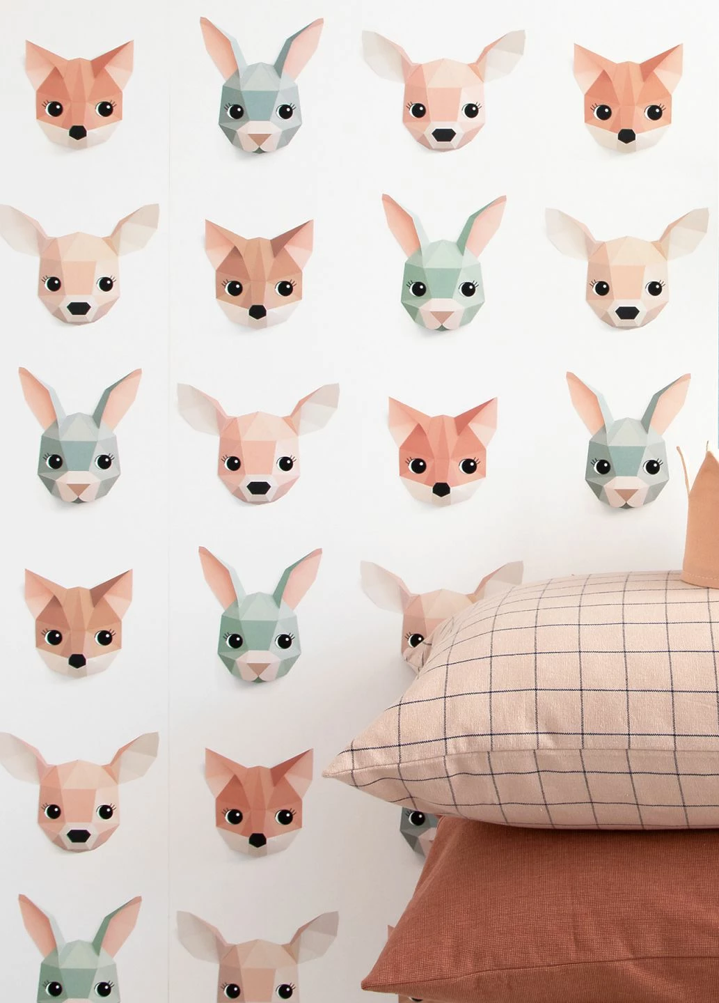 Wenn Fuchs und Hase sich gute Nacht oder guten Morgen sagen, dann bitte im Origami-Style und mit dieser erfrischenden Herzlichkeit. Die beliebten Waldtiere avancieren auf der Design Tapete zu echten Freunden im Kinderzimmer, mit denen man seine Sorgen und Freuden teilen oder spannende Fantasie-Geschichten erleben kann.