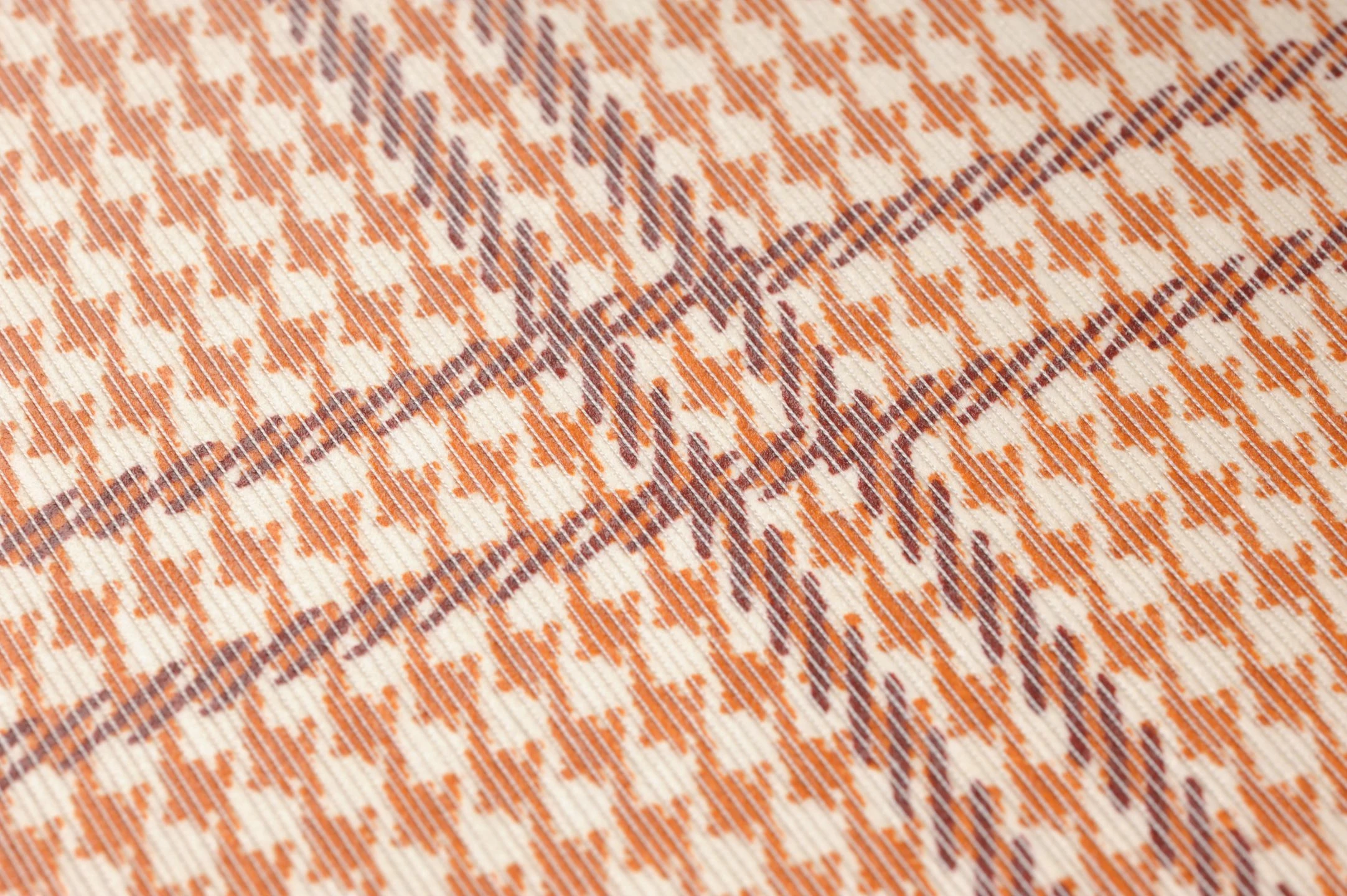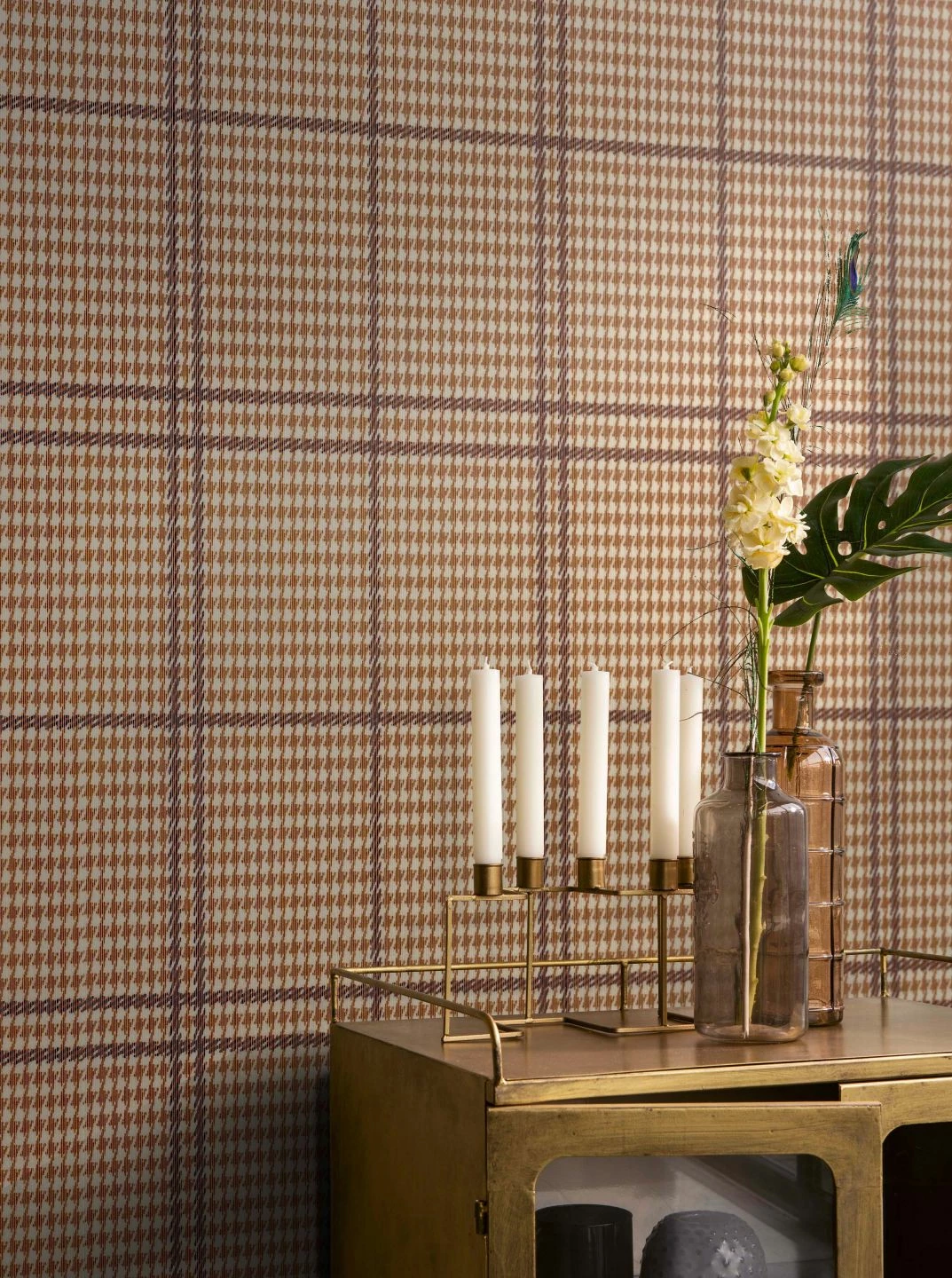 Ein großflächiges Karomuster in warmen Orange- und Rotbrauntönen, wie es beim Weben von Stoffen entsteht, ist hier einmal nicht zu einer wärmenden Wolldecke geworden, sondern erfüllt Ihren Wände mit einem Vertrauen erweckenden Gefühl der Geborgenheit. Echte, leicht schimmernde Kettfäden überziehen das Pepitamuster mit ihrer fühlbaren Struktur. Die Textiltapete macht Ihre Wohnung zu einem echten Zuhause.