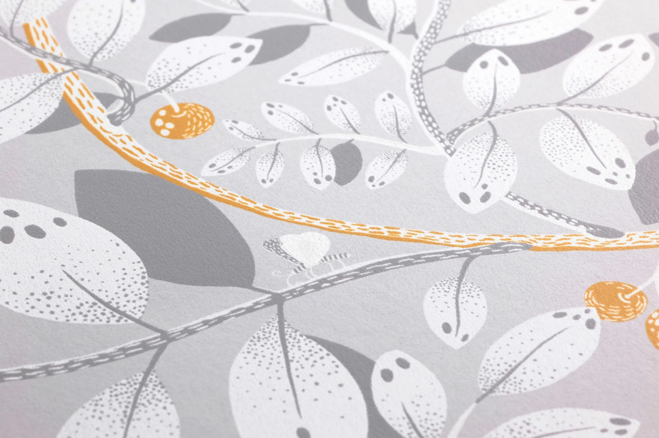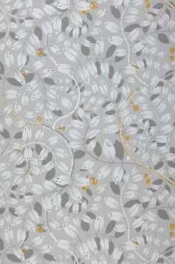 Sanfte, kontrastarme Grautöne bestimmen das Bild der Vliestapete Grada. Zwischen den Blattranken und Früchten sitzen schön geformte Schmetterlinge – alles in Dunkelgrau, Hellgrau und Weiß gehalten. Nur einzelne Zweige und Beeren werden durch ein kräftiges Ockergelb hervorgehoben und betont. Dass Grautöne keineswegs langweilig sind, sondern gerade in Verbindung mit einer Kontrastfarbe ein tolles Ensemble abgeben, ist hiermit bewiesen!