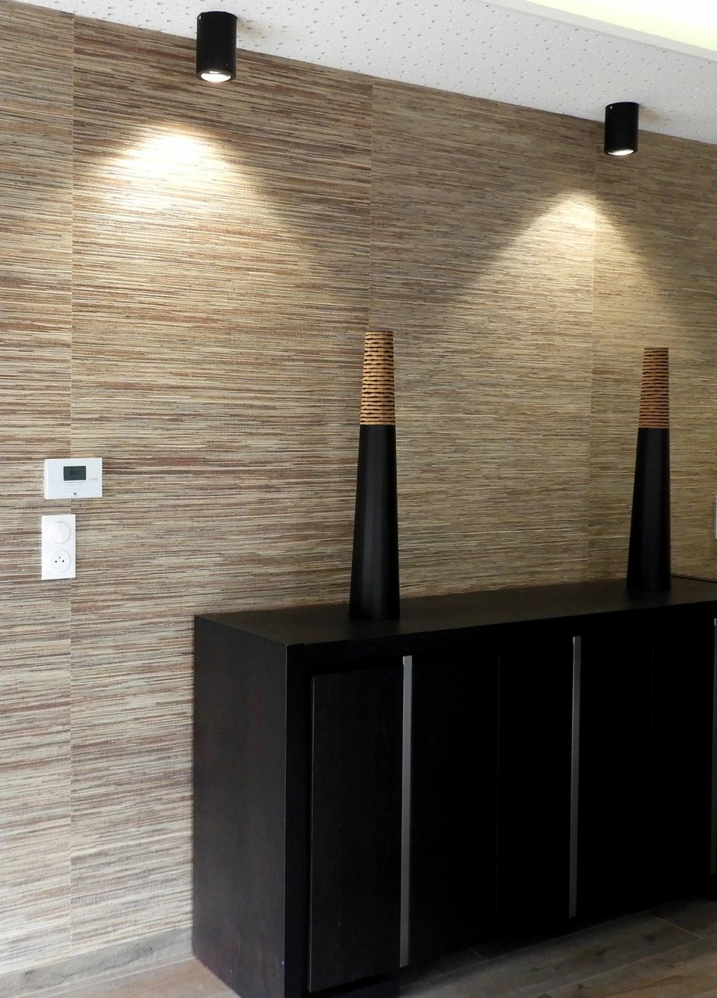Feld- und Berggräser, verarbeitet zu einer einmalig schönen Grastapete, mit denen ein Stück unverfälschte Natur in den Raum einzieht – Diese Naturtapete besticht durch ihre farbliche Lässigkeit und ein schnittiges Kontrastbild aus Schwarz, Beige und Blassbraun. Spüren Sie mit allen Sinnen die Wärme und Behaglichkeit, die von der natürlichen und gewollt unperfekten Struktur ausgeht.