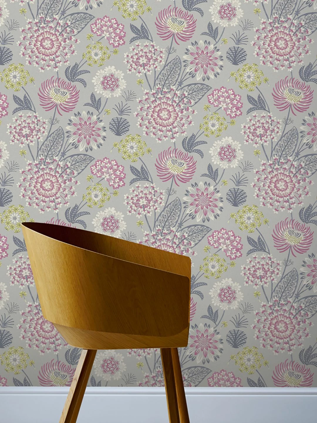 Stilisierte Blumen sind Markenzeichen der 1950er bis 1970er Jahre und haben auch in der aktuellen Zeit nichts von ihrem anziehenden Reiz verloren. Das beweist die florale Mustertapete Grisella. Die Farbgebung der lebendigen Tapete in Achatgrau, Cremeweiß, Gelbgrün, Rotviolett und Schiefergrau lässt bei der individuellen Raumgestaltung viele Freiheiten.