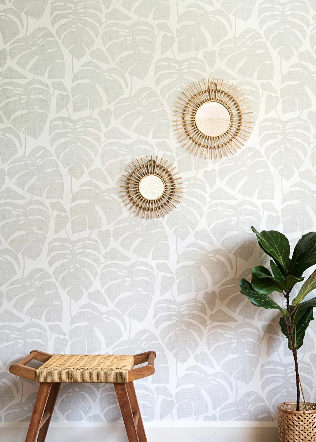 Feine graue Schraffuren deuten die extravagant geformten Blätter der Monstera mit ihren Löchern und Einkerbungen nur an und bedecken den weißen Untergrund fast vollständig. Dezent und lebendig zugleich wirkt die moderne Vliestapete Guatemala durch diesen zeichnerischen Kniff. Toll zu kombinieren ist sie außerdem – mit schwarzen, weißen oder grauen Möbeln natürlich, aber auch mit fröhlichen Farbklecksen in Ihrer Innenausstattung!