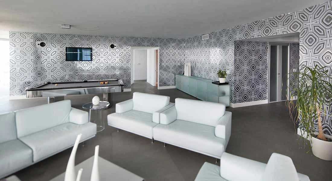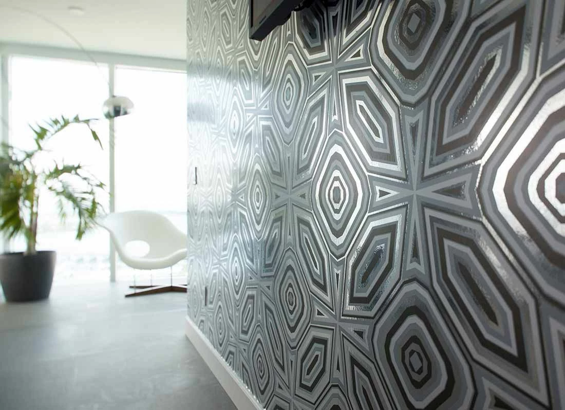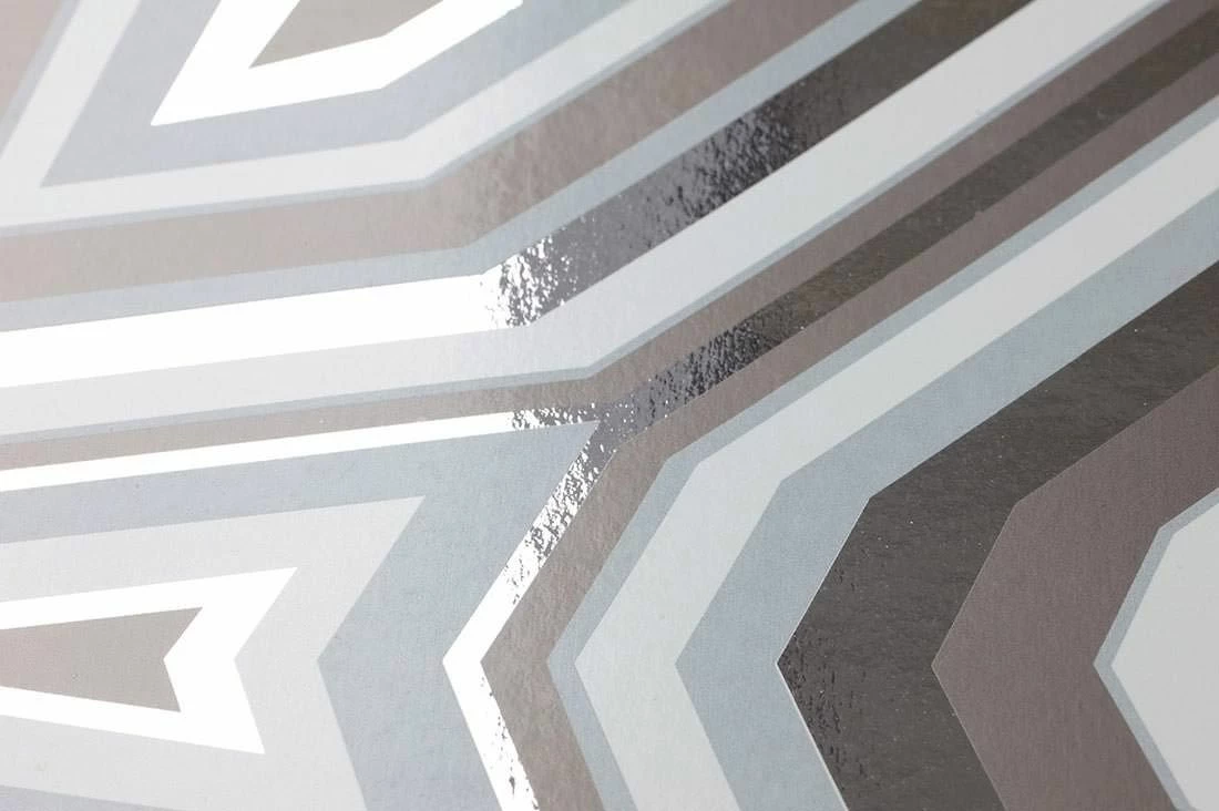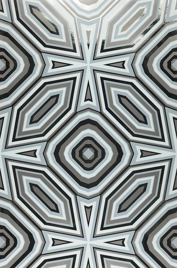 Geometrische Formen in kühlen Grautönen und glänzendem Chromeffekt scheinen wie beim Blick in ein Kaleidoskop auseinander hervorzugehen und miteinander zu verschmelzen. Das Besondere daran ist der glänzend schwarz-weiß-silberne Eindruck. Kühle Eleganz trifft futuristische Ästhetik in dieser kostbaren Vliestapete des New Yorker Herstellers Flavor Paper. Die Tapete ist ab der Menge von drei Rollen erhältlich.