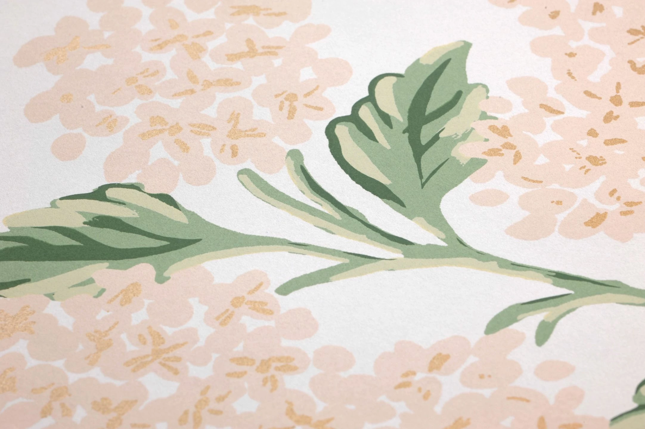 Die ganze Pracht der beliebten Hortensien fängt die Vliestapete Hydrangea von Rifle Paper ein. Die imposanten Blütendolden in zartem Rosa, akzentuiert durch Details in schimmerndem Perlgold, verteilen sich locker über die ganze Fläche Ihrer Wand. Zusammen mit dem frischen Grün der Blätter und dem weißen Untergrund der Tapete erinnern sie an sorglose Sommerferien, an einen romantischen Bauerngarten und an den Sonnenschein!