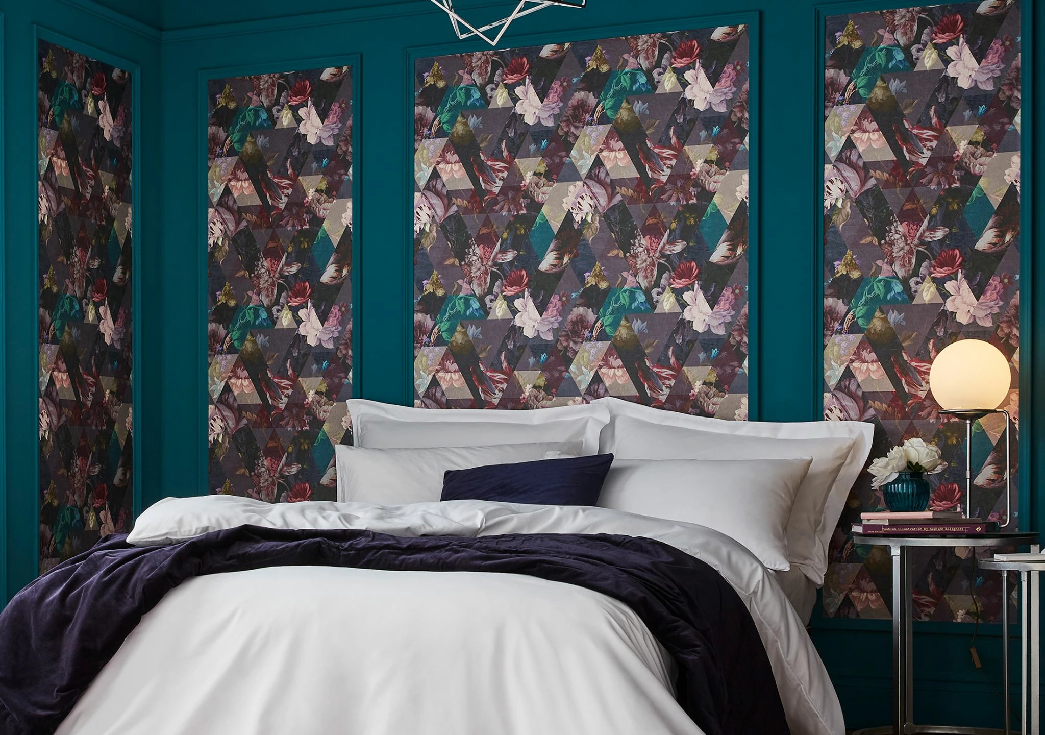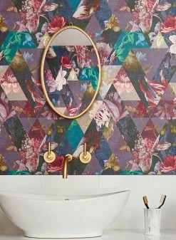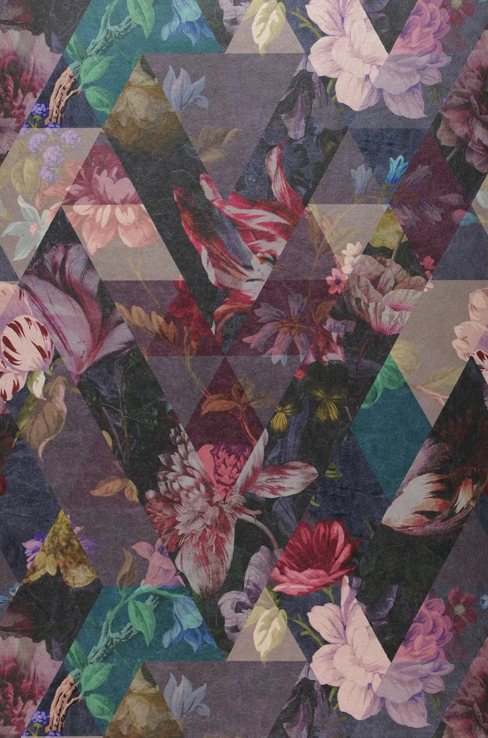 Eine Tapete wie der Blick durch ein Prisma: Farblich abgestufte Dreiecke, Rauten und Trapeze liegen über dem üppigen Blumenmuster und rufen einen leicht verfremdenden Effekt hervor. Die verwendeten Farben sind so perfekt aufeinander abgestimmt, dass die bunten Töne und Grenzflächen bei aller Lebhaftigkeit den Gesamteindruck harmonischer Ästhetik hinterlassen. „Imaginario“ hebt das Konzept der geblümten Tapete auf ein neues Niveau.