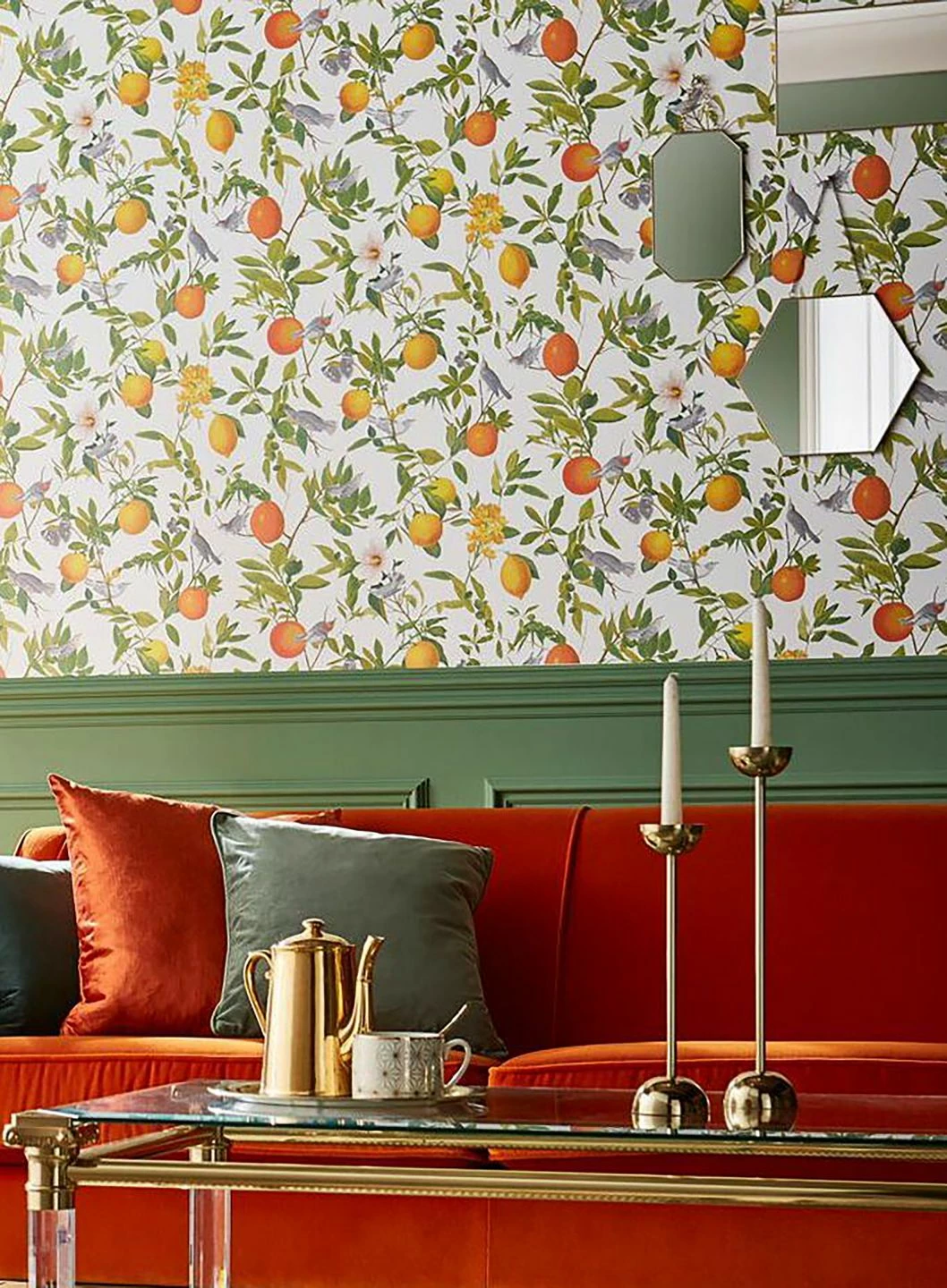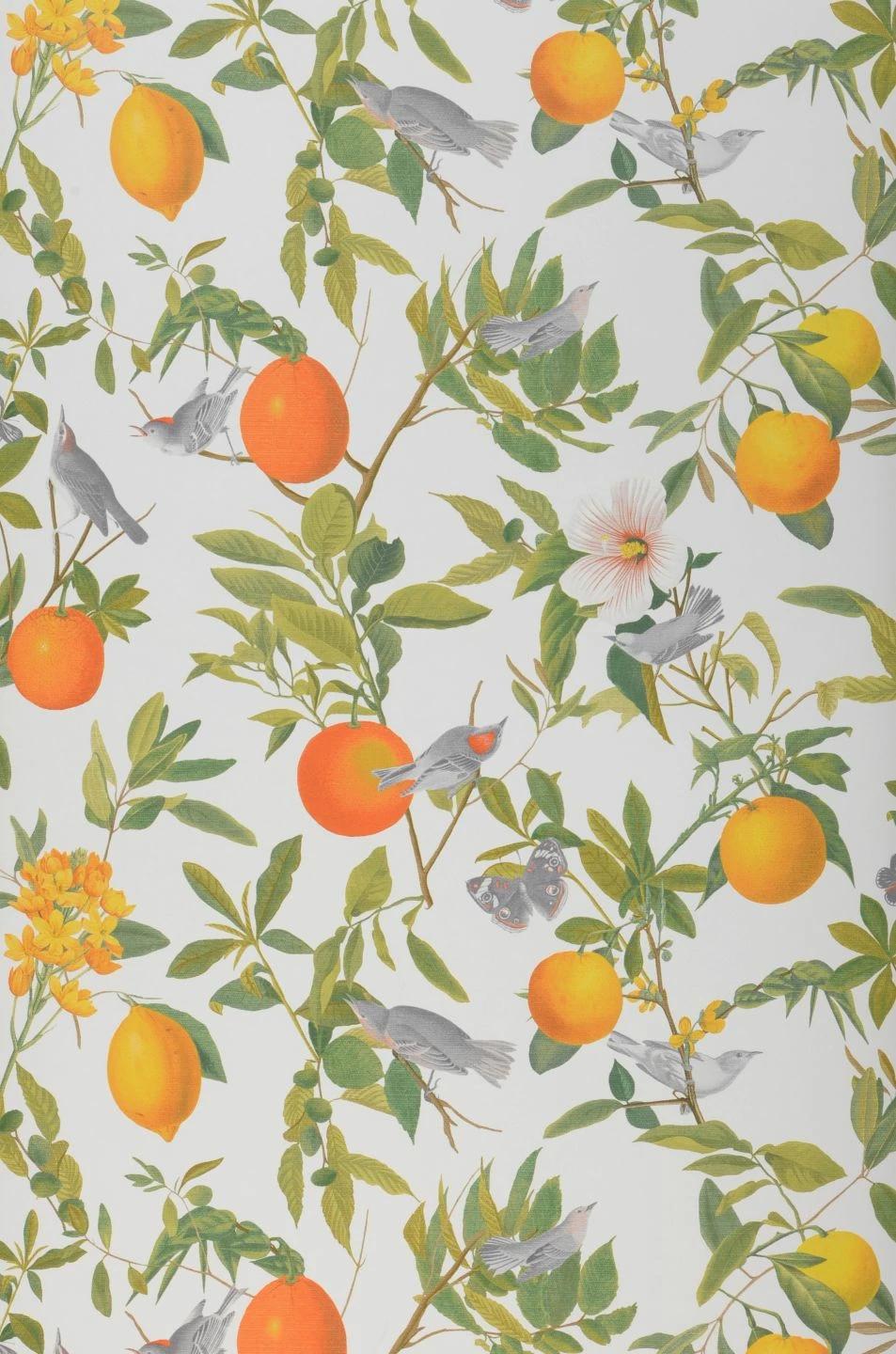 Unter der Sonne des Südens gereifte Zitrusfrüchte in leuchtenden Farben stehen hier ganz im Mittelpunkt. Gegenüber ihren kräftigen Gelb- und Orangetönen treten die zierlichen, flinken Vögel, die zwischen ihnen an den Zweigen sitzen, mit ihrem hellgrauen Gefieder fast in den Hintergrund. Sonne, Wärme und die Erinnerung an den Geschmack von frisch gepresstem Orangensaft zaubern jeden Tag ein Lächeln in Ihr Gesicht.