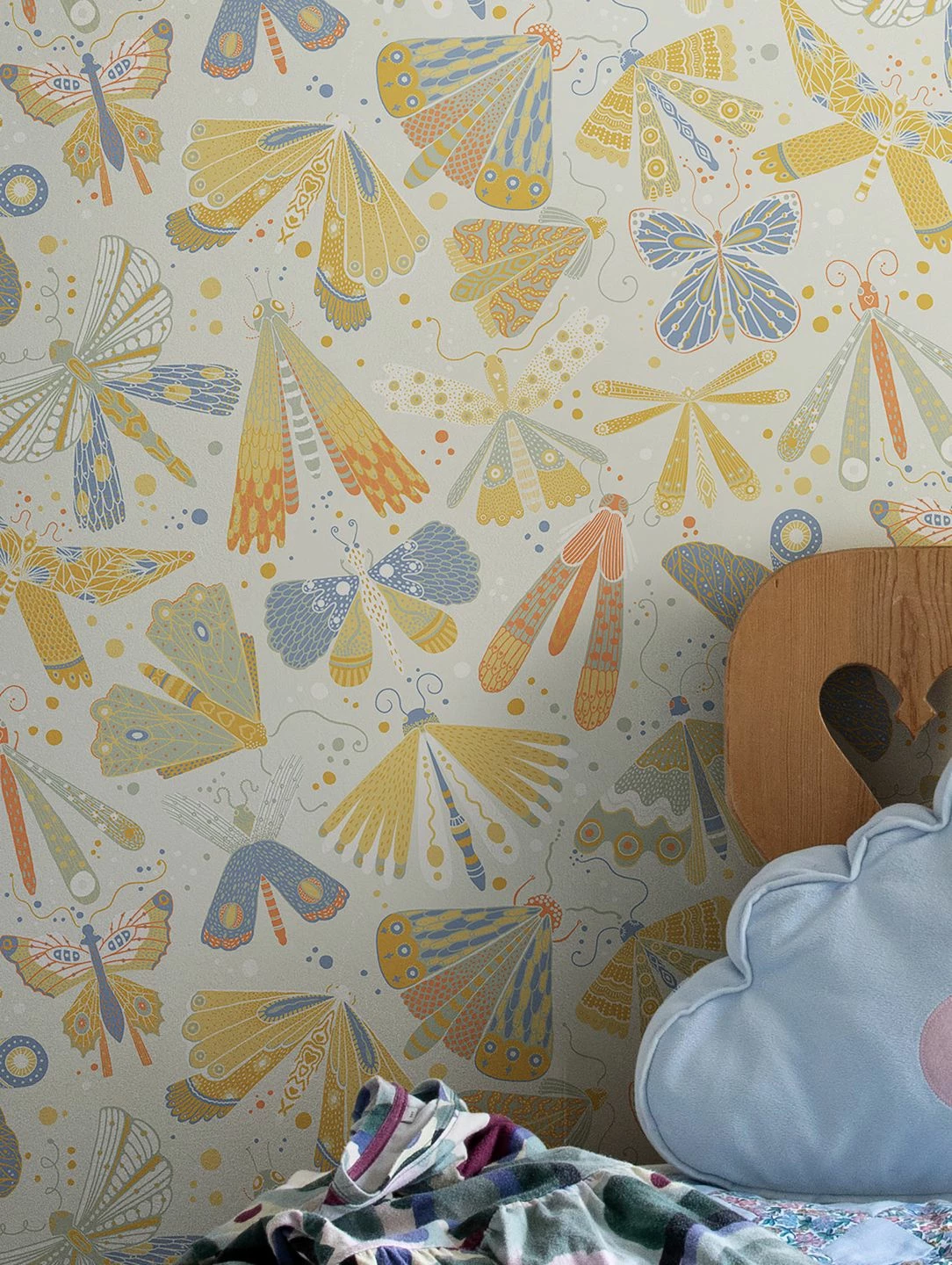 Gelb- und Orangetöne lassen die Schmetterlinge so wirken, als würden sie von den Strahlen der Sommersonne beschienen. Abgesetzt mit sanftem Blau und blassem Grün und verziert mit dekorativen Flügelzeichnungen, flattern sie mit sommerlicher Leichtigkeit in Ihr Zuhause und geben zum einladend-hellen skandinavischen Einrichtungsstil eine Portion Lebhaftigkeit dazu. Auch für ein freundliches Kinderzimmer sind die wunderhübsch gezeichneten Insekten bestens geeignet.