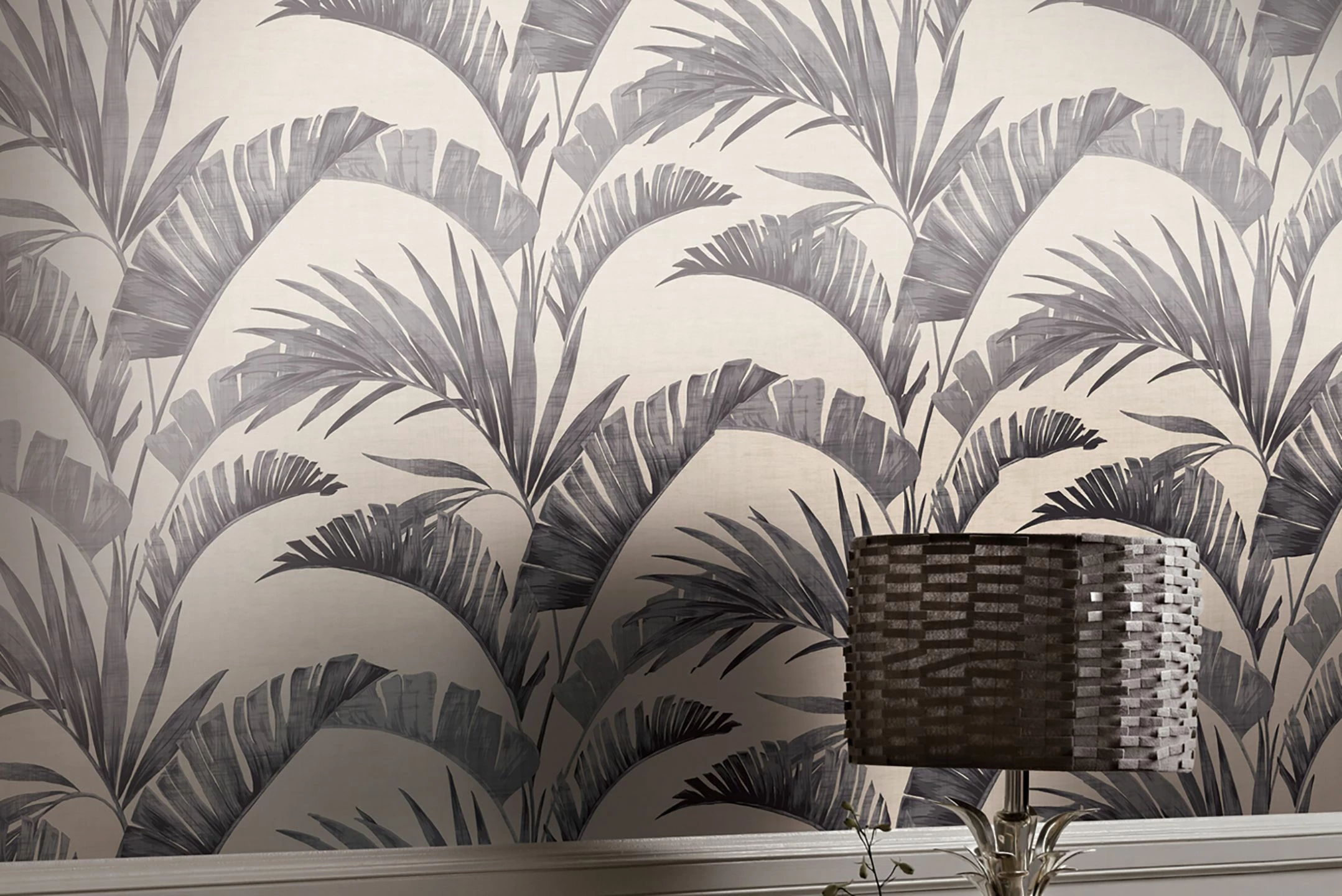 Palmen als Luxusfaktor, z.B. für den exzentrischen Boheme-Stil oder ein orientalisch-exotisches Flair im Raum. Vliestapete Jumana mit plakativem Palmzweigmuster, das in Grautönen zart schimmert, ist die richtige Wahl und zaubert dezente Lichtreflexe. Die hochwertige florale Designtapete harmoniert mit Silber, rauchigen Violetttönen und Naturmaterialien.