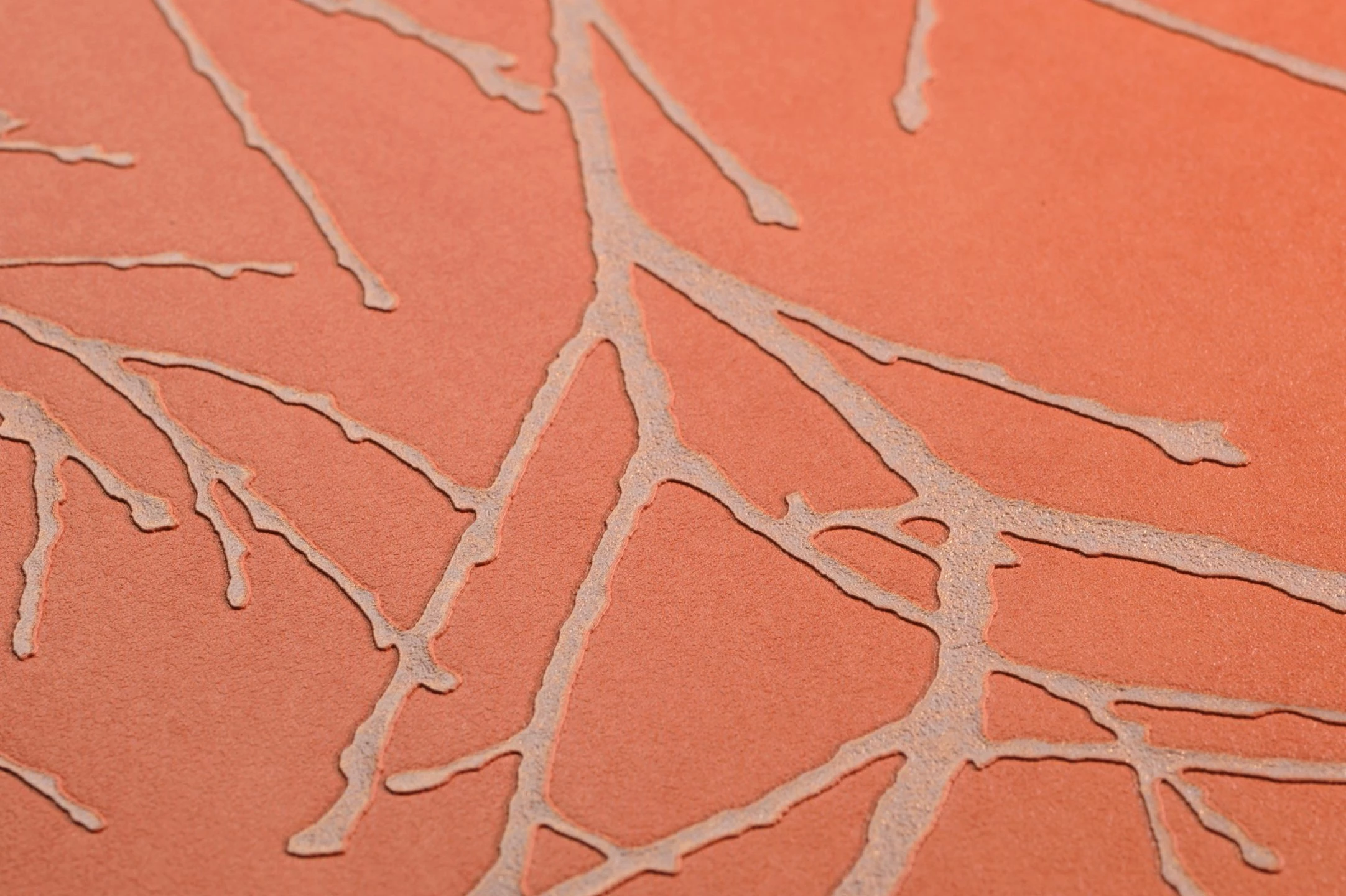 Vor dem leuchtend rotorangefarbenen Grund heben sich helle, zarte Zweige wirkungsvoll ab, die als fühlbares Relief in die Vinyloberfläche von Kansai eingearbeitet sind. Mit ihren feinen Verästelungen und den Knospen, die vom kommenden Frühling erzählen, wirken sie besonders echt. Einer Einrichtung im asiatischen Stil oder im Landhaus-Stil gibt die Vliestapete stimmigen Hintergrund und lebhaften Farbakzent zugleich. Die hoch waschbeständige Oberfläche lässt sich problemlos auch in einem stilvollen Bad nutzen.