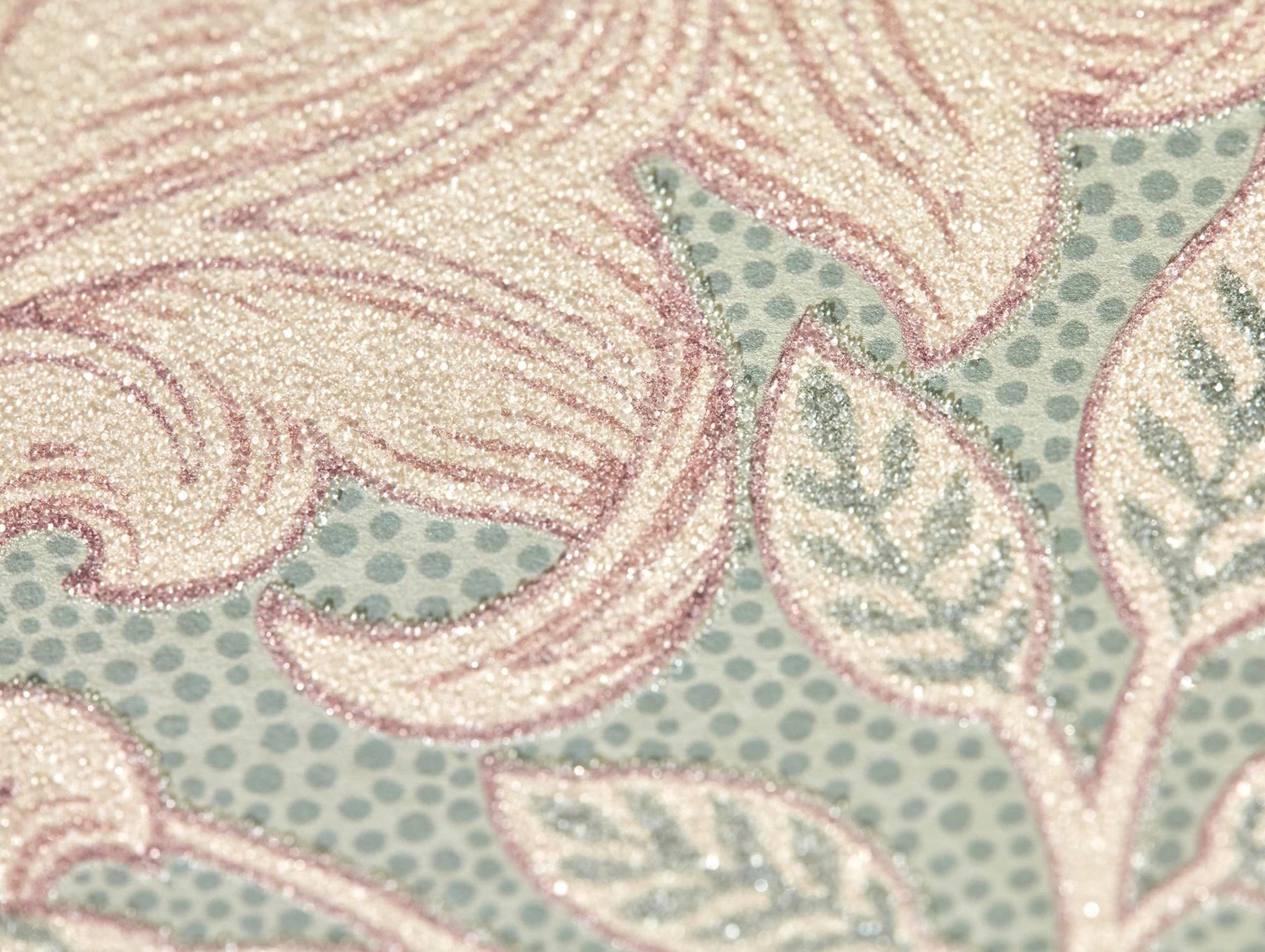 Wie ein feiner textiler Wandbehang, der einst die edlen Gemächer der Adeligen zierte, mutet die hochwertige Glasperlen Tapete mit fühlbarem Relief an. Die zarten Ranken und Blüten, die nebulös erscheinen, werden vom Licht wachgeküsst und funkeln wie kleine Diamanten, was den besonderen Reiz der Design Tapete ausmacht.