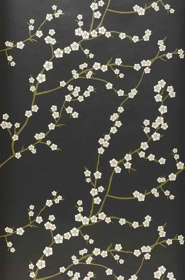 Feng Shui, Yin und Yang, das Chi – Der Asia Look bedient in der Inneneinrichtung die Ansprüche der vollkommenen Harmonie, den Einklang von Mensch, Umwelt und Natur. Was kann es da Schöneres geben, als dieses in Japan kulturell hoch stehende Symbol: Die Kirschblüte. Vom schwarzen Untergrund heben sich die blühenden Zweige in Farngrün, Silber, Violett, Weiss effektvoll ab und zeigen eine sehr beruhigende, klare Wirkung. Genießen Sie den wohltuenden Gleichklang, der von dieser floralen Mustertapete ausgeht. Bevorzugte Einrichtungspartner dazu sind Möbel aus warmen einheimischen Hölzern oder exotischem Tropenholz.
