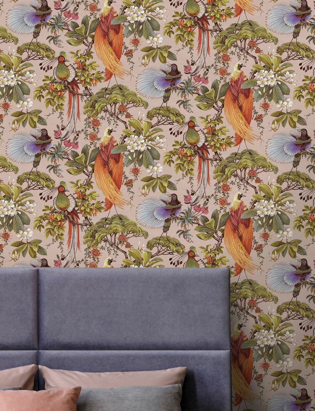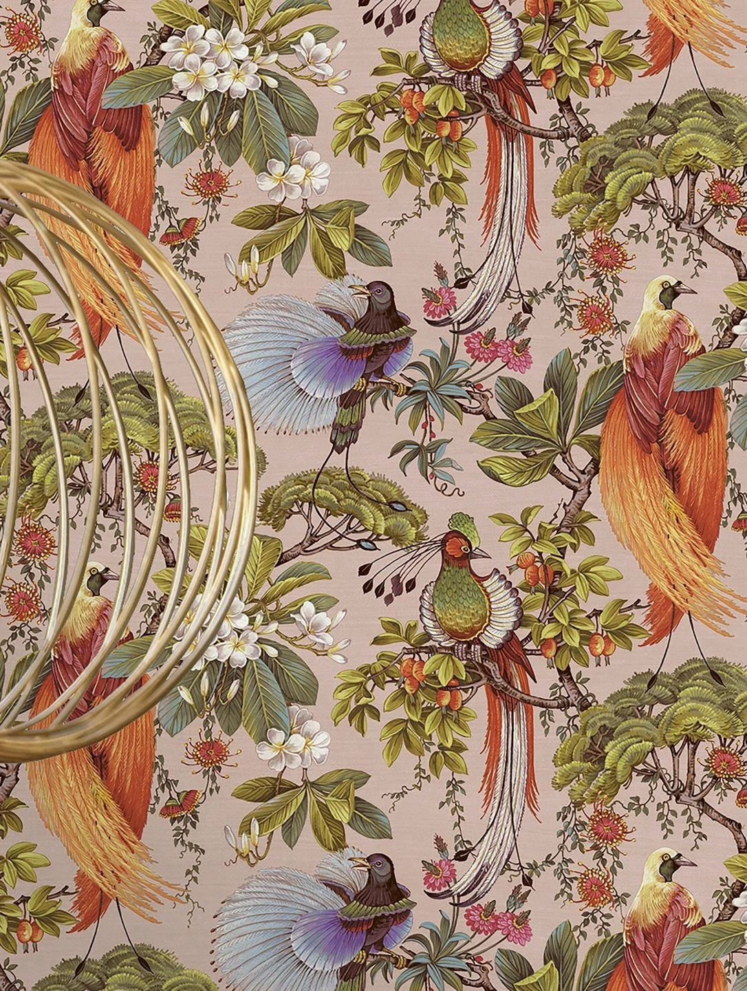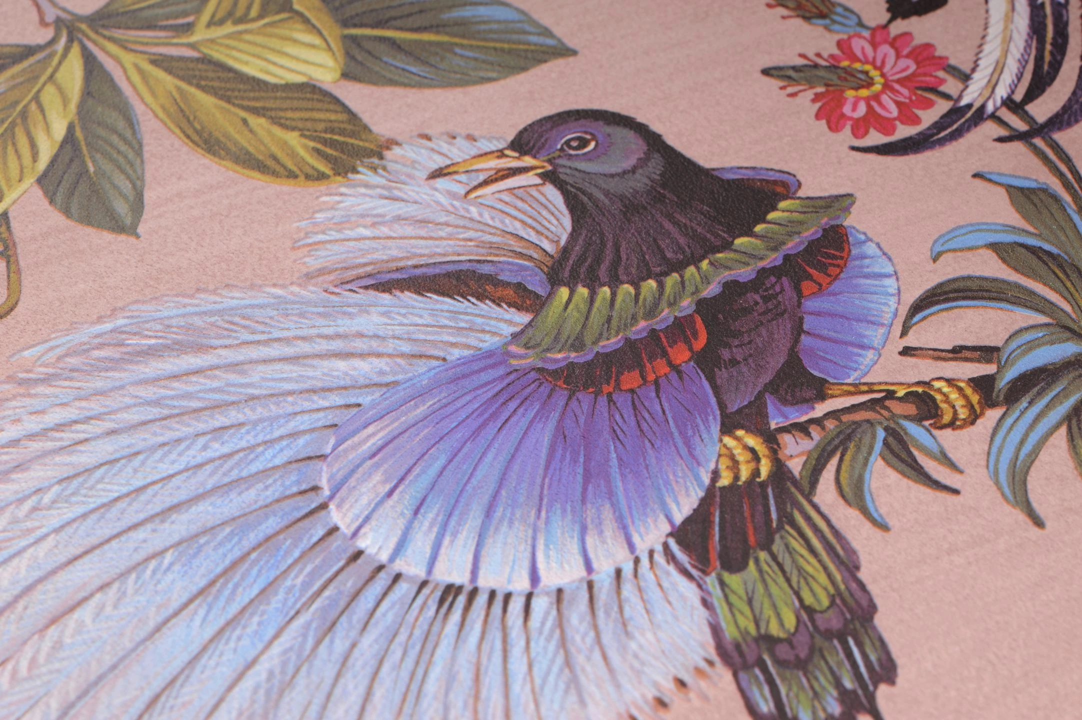 Leuchtende Farben und bauschige Federbüschel – die tropischen Paradiesvögel bringen buntes Leben in Ihren Alltag. Die verschiedenen Blumen, Blätter und Zweige, auf denen sie sitzen, stehen ihnen in Formen- und Farbenvielfalt in nichts nach und bilden zusammen mit dem hellrosafarbenen Untergrund eine schöne Kulisse für die auffälligen, eleganten Vögel. Das tropische Flair von Vliestapete Limosa macht Ihren Raum unverwechselbar.